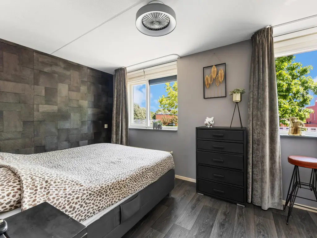 Afm. ca. 3,81 x 4,81m.m., fijne slaapkamer, gelegen aan de voorzijde en voorzien van een dakkapel en een diepe vaste kast.