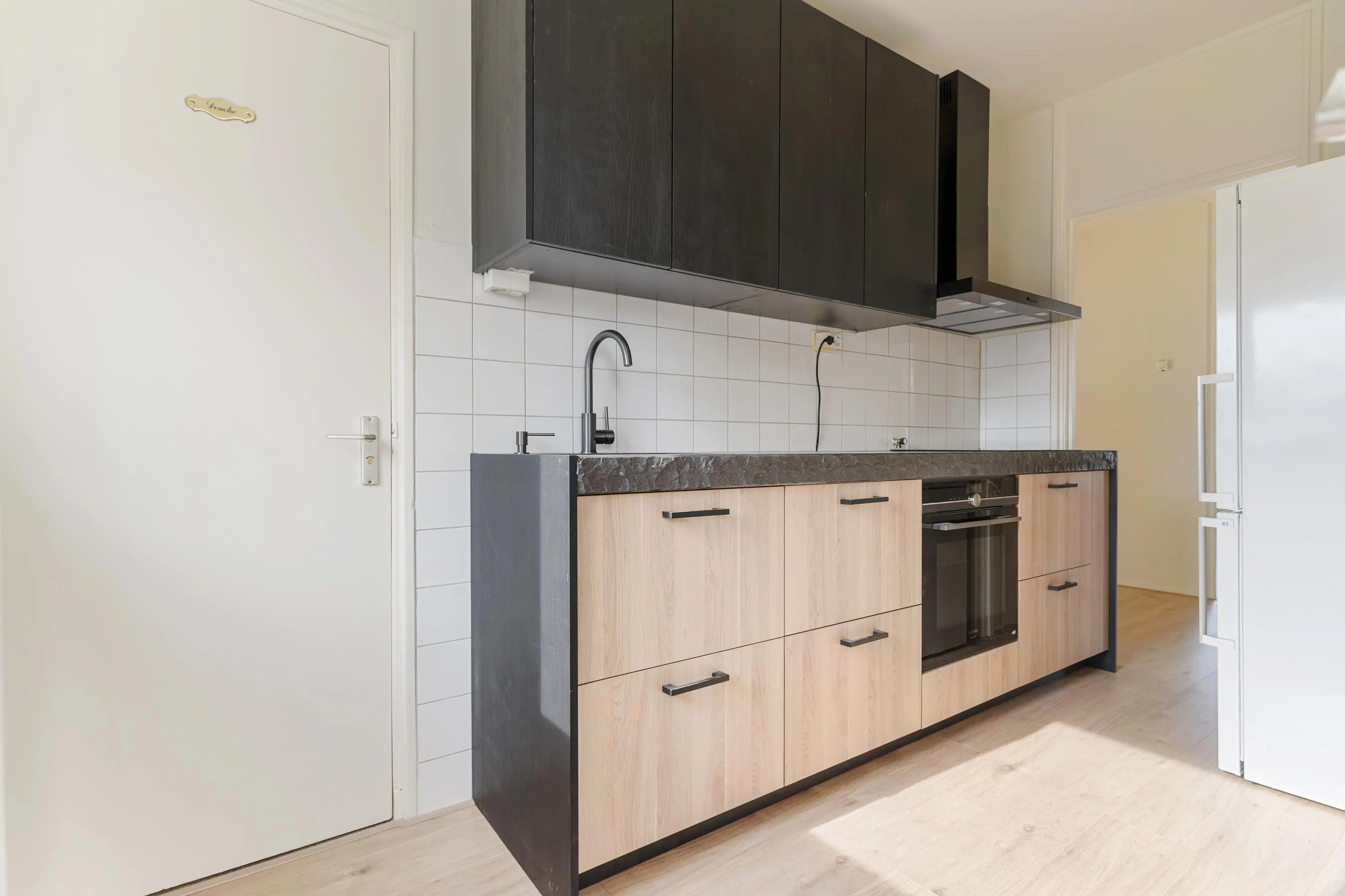 De keuken is recent vernieuwd en uitgevoerd met een moderne opstelling. De badkamer en toiletruimte zijn eenvoudig, maar functioneel. Het gehele appartement is voorzien van kunststof kozijnen met dubbele beglazing, een warmaandoende laminaatvloer en een neutrale wandafwerking.