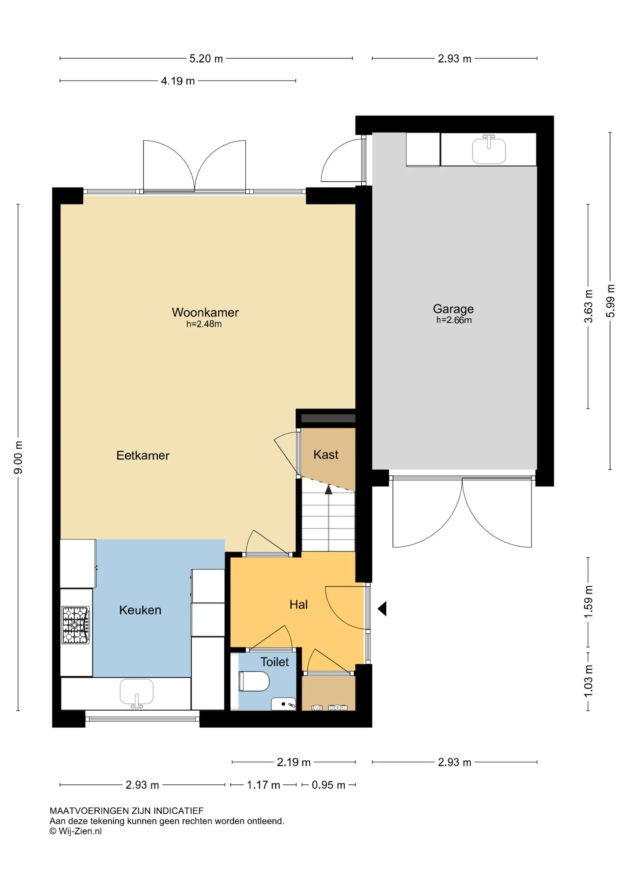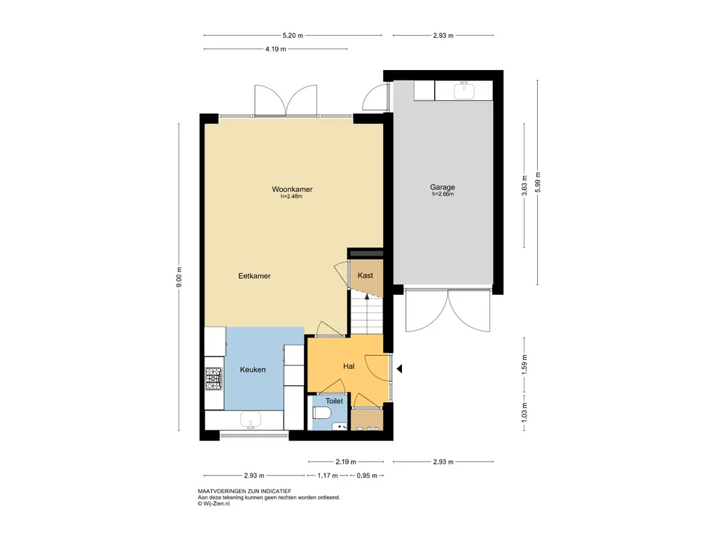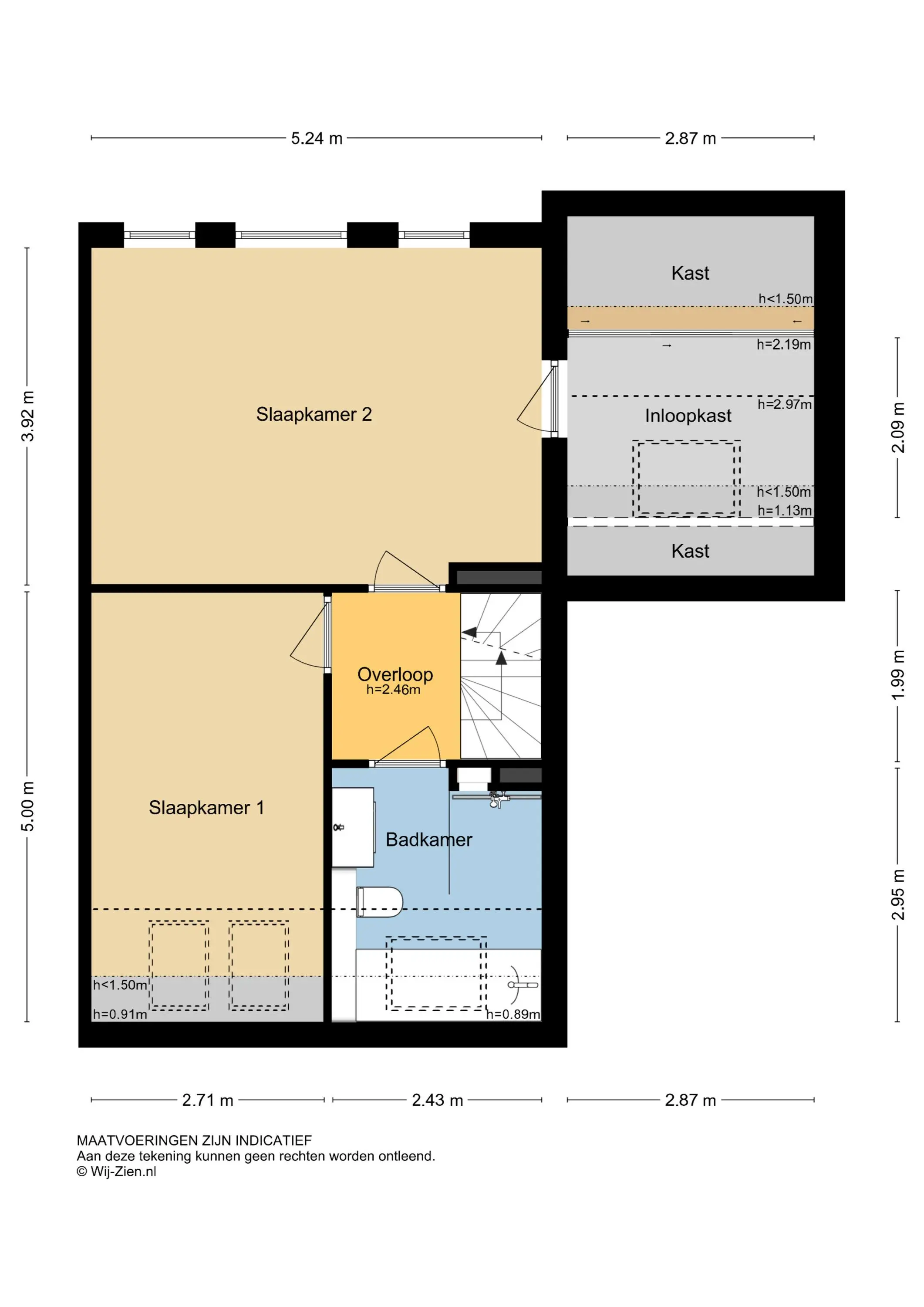 De vermelde afmetingen zijn lengte/ diepte x breedte (bezien vanuit het binnentreden van een ruimte).
