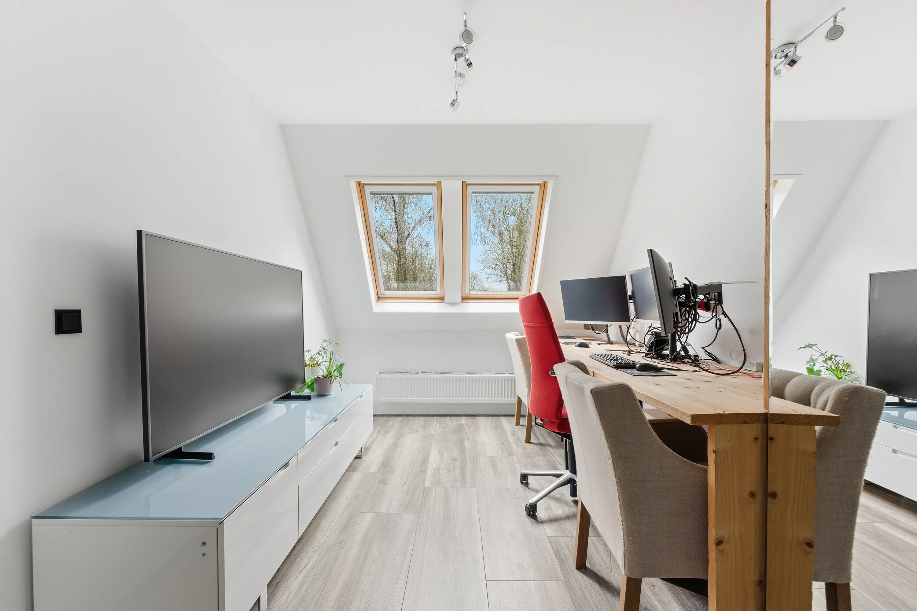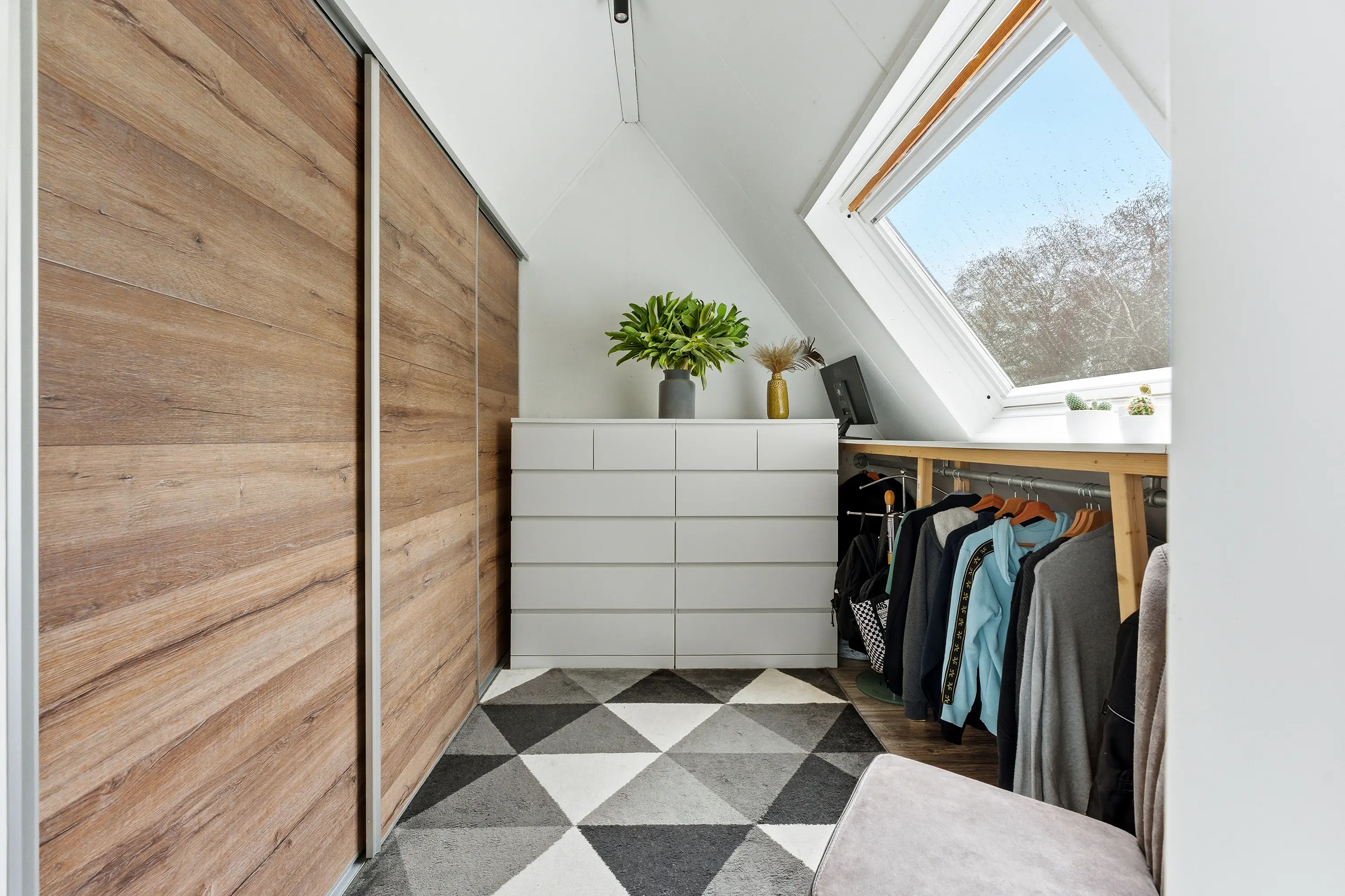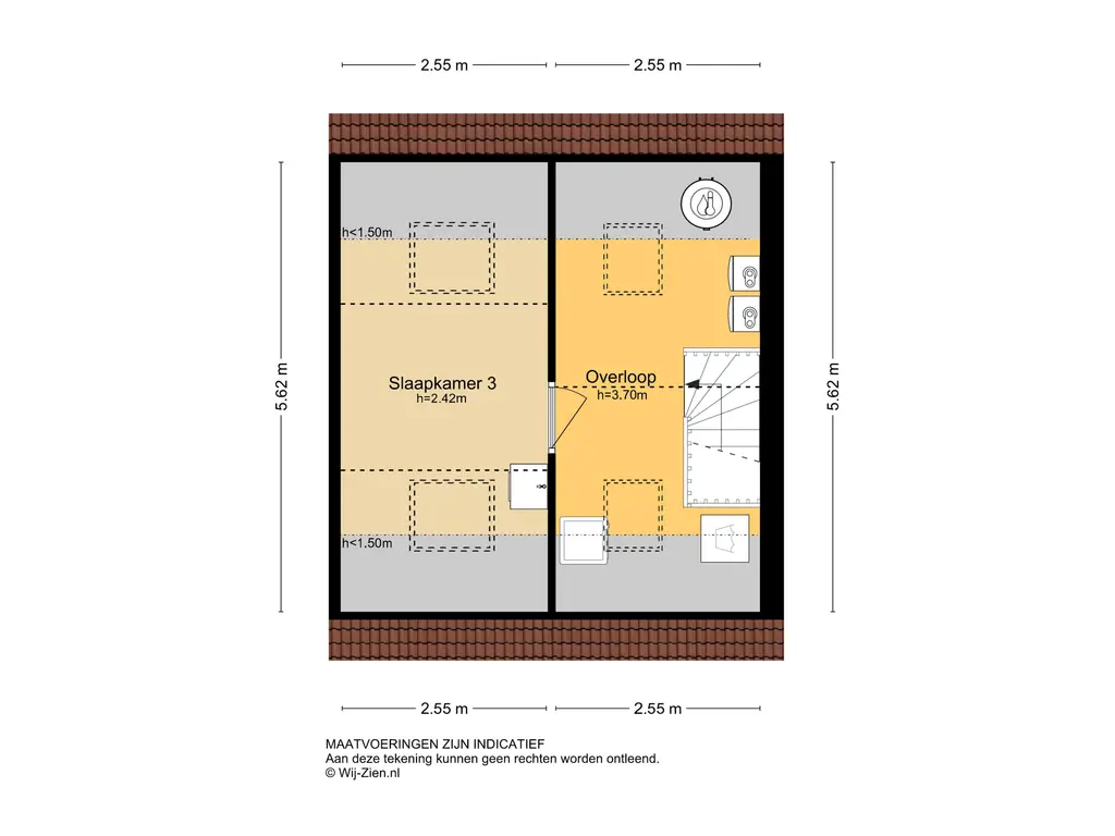 Gelegen aan de voorzijde en voorzien van twee grote dakvensters.