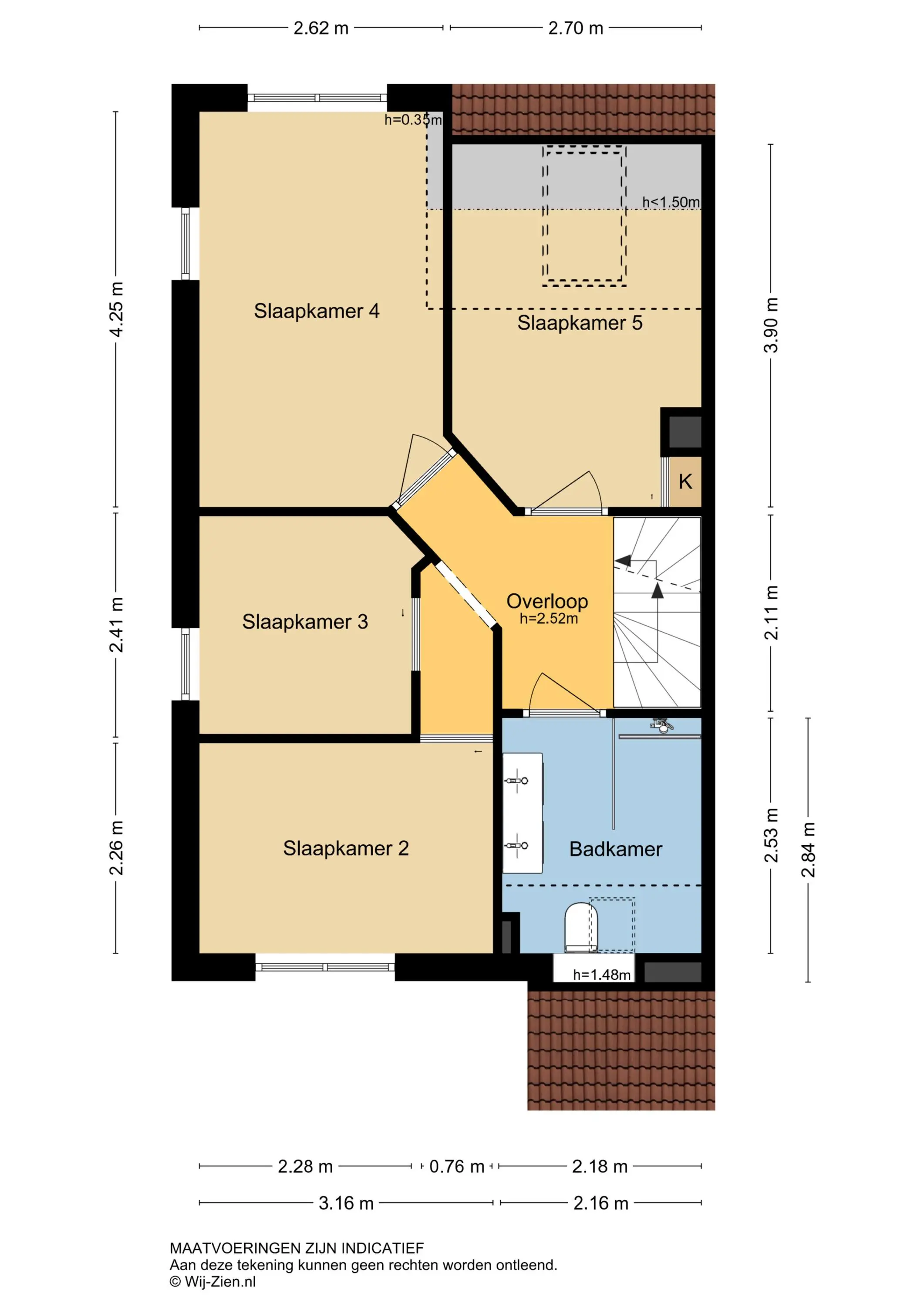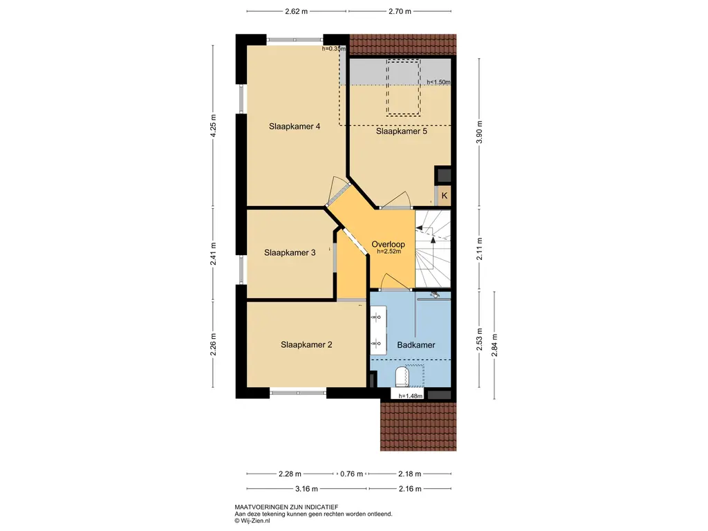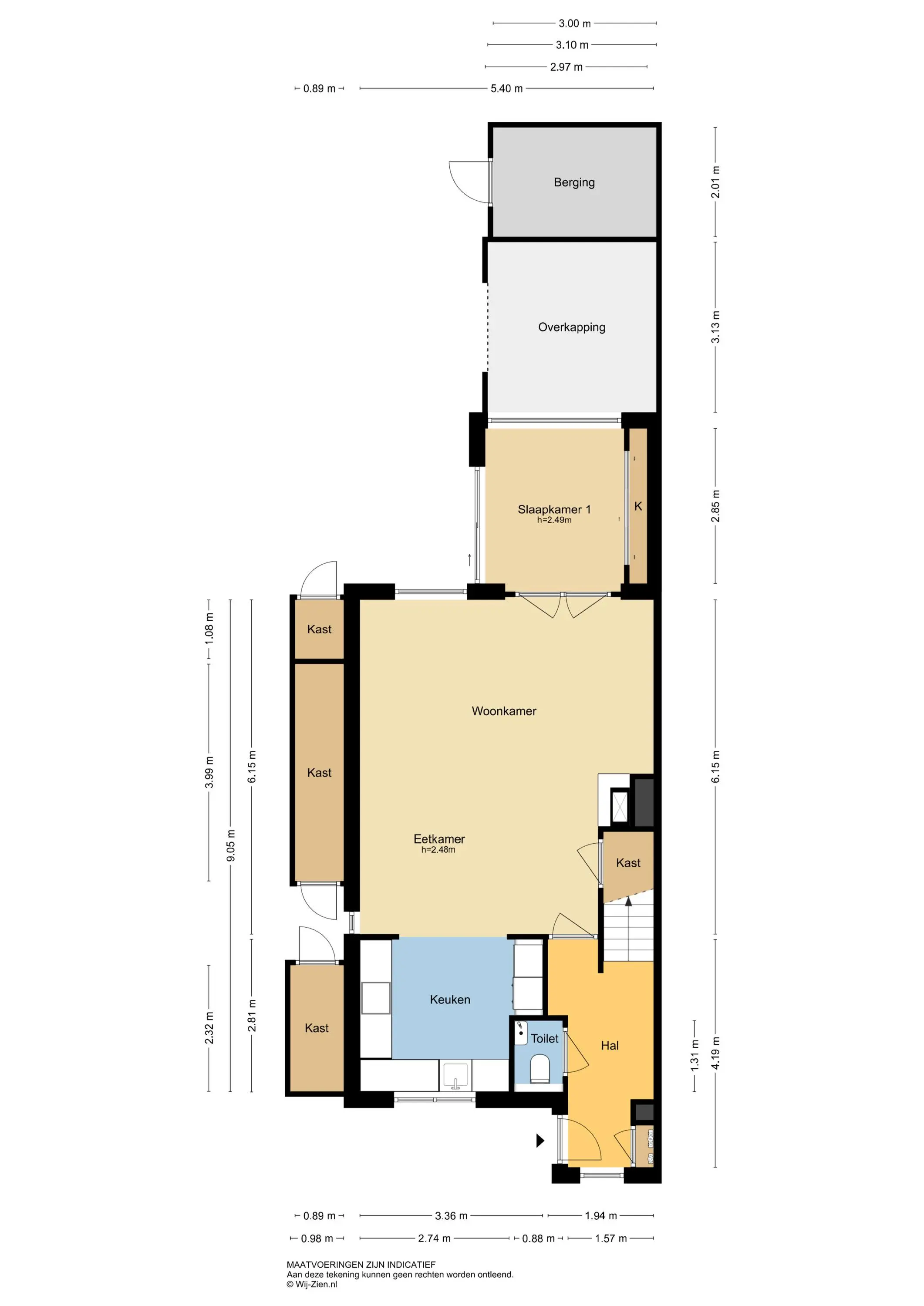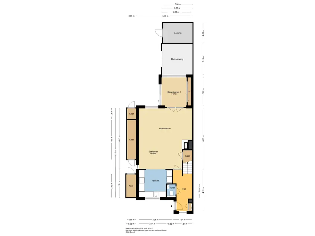 De vermelde afmetingen zijn lengte/ diepte x breedte (bezien vanuit het binnentreden van een ruimte).