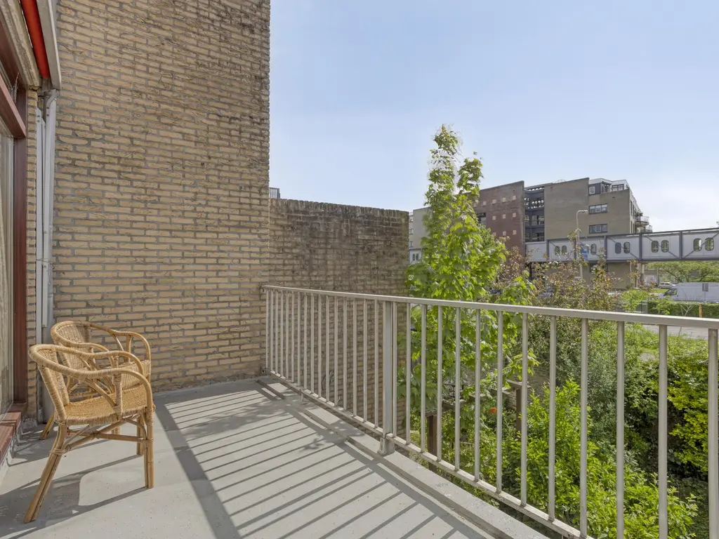 Toegankelijk vanuit de woonkamer. Deze ruimte biedt toegang tot het balkon aan de voorzijde en de toiletruimte, welke ingericht is met een staand toilet en een fonteintje.