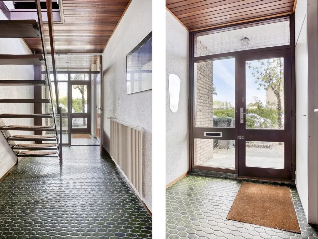 Entree in de ruime hal met de meterkast, toegang tot de garage, opgang naar de 1e verdieping en toegang tot de tuinkamer.