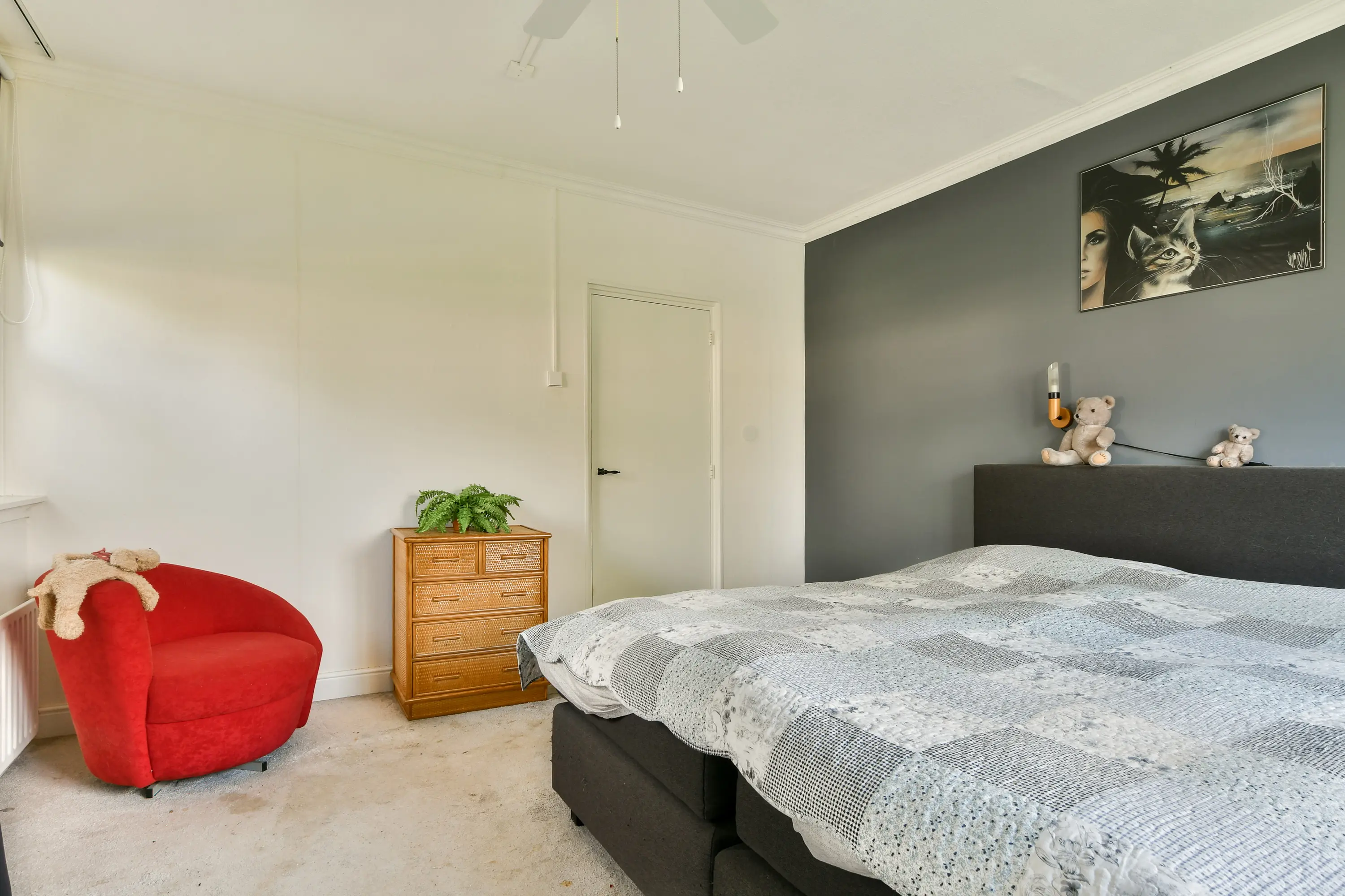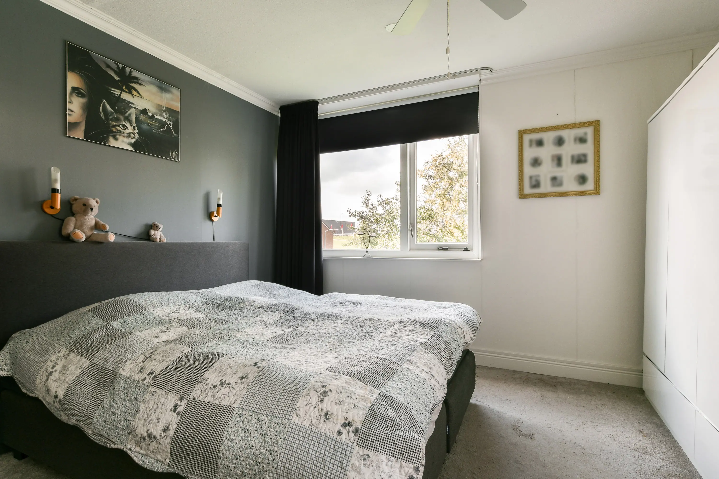 Zeer ruime slaapkamer (voorheen twee kamers) aan de galerijzijde. Dankzij de hoekligging beschikt de kamer over een extra zijraam, wat zorgt voor extra lichtinval.