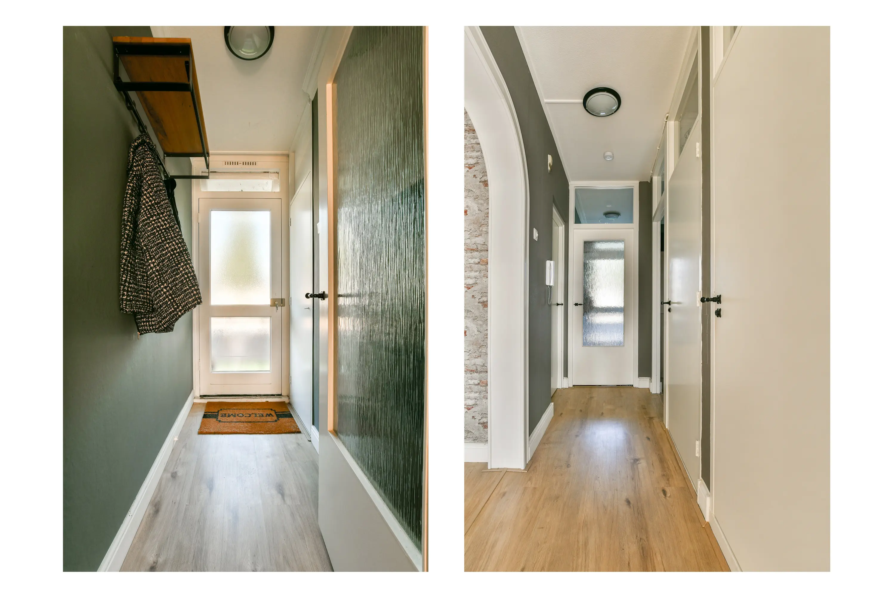 Ruime entree met de meterkast en toegang tot alle vertrekken.