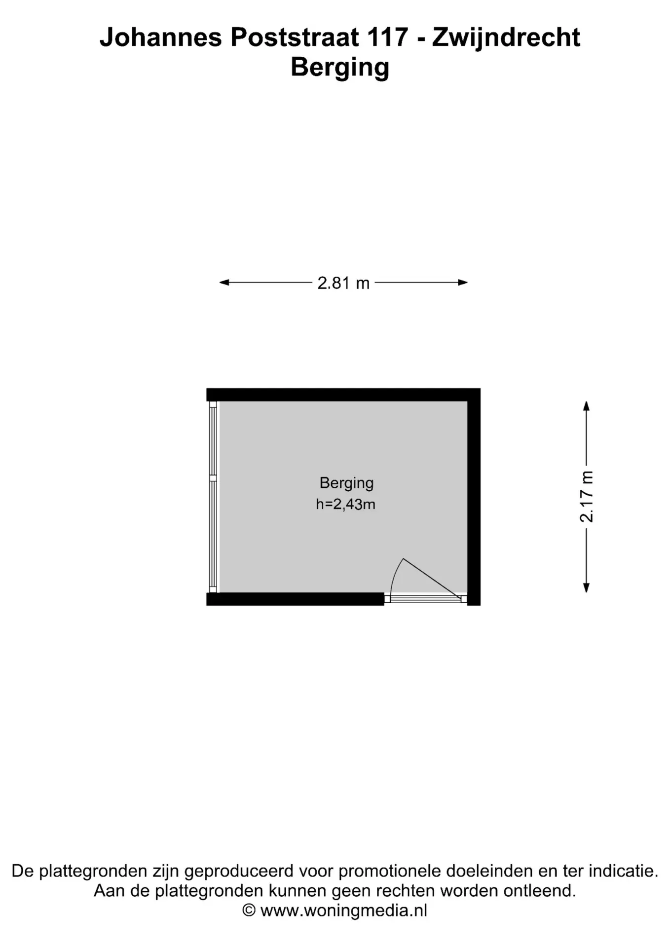 De vermelde afmetingen zijn lengte/ diepte x breedte (bezien vanuit het binnentreden van een ruimte).