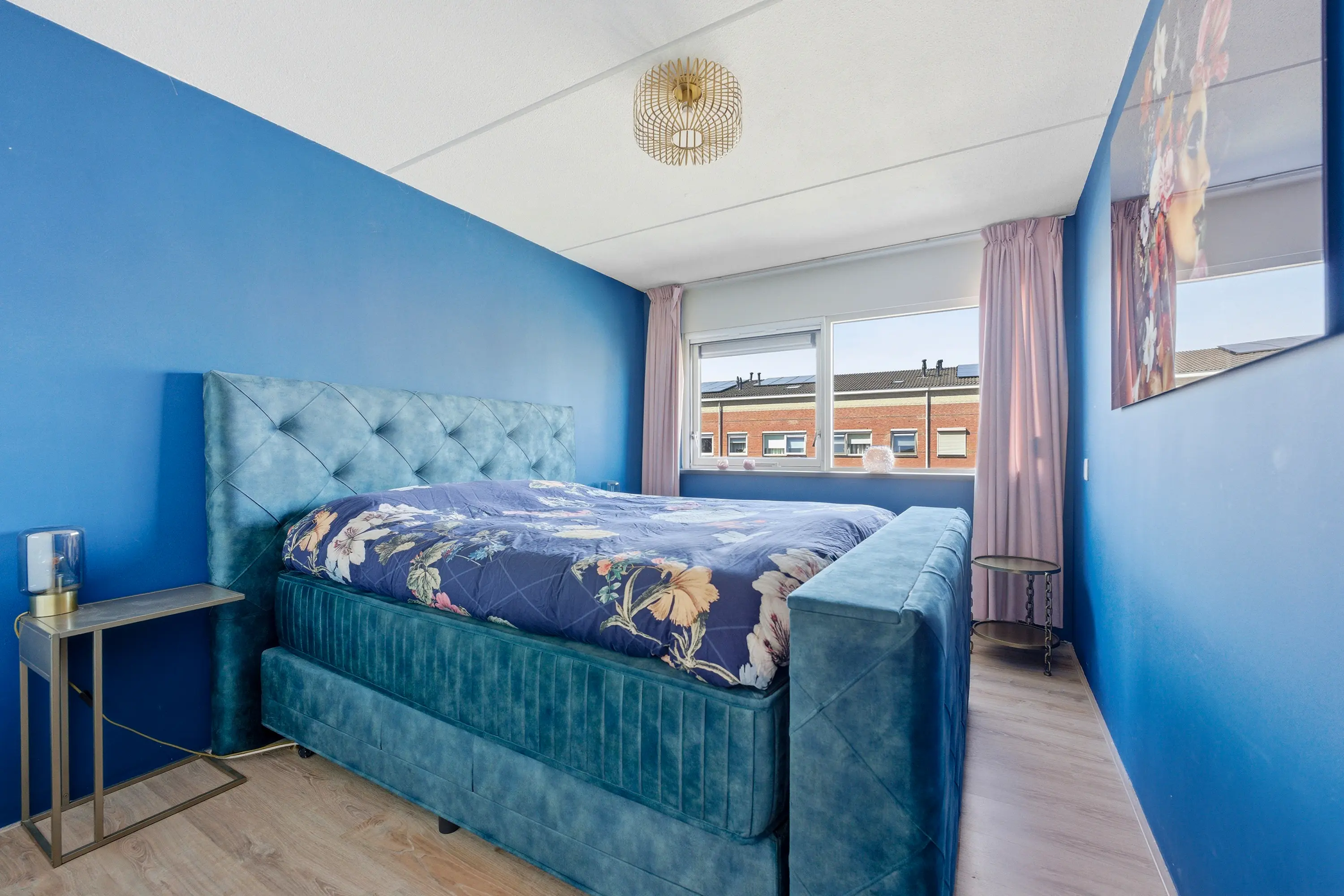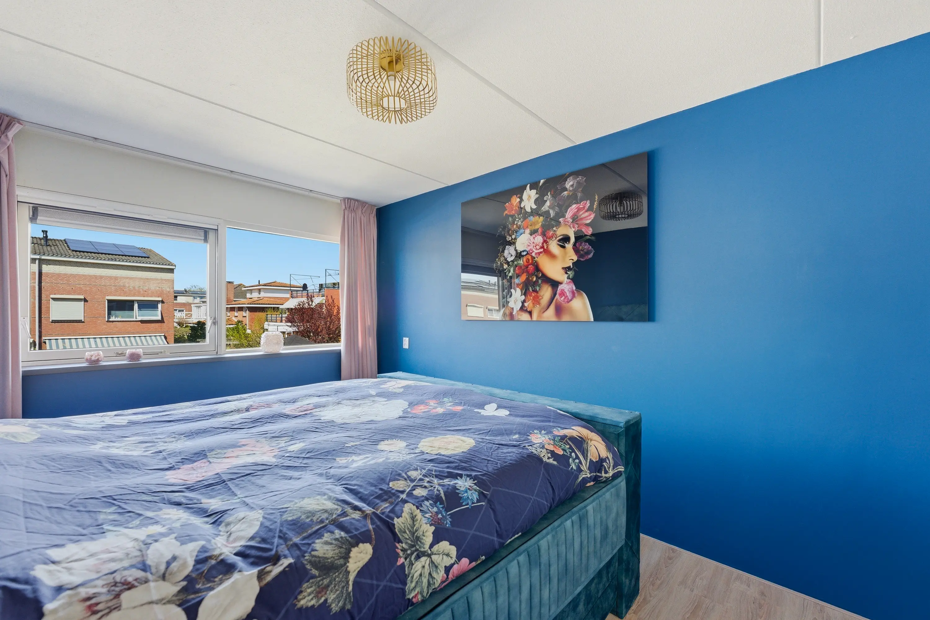 Gelegen aan de achterzijde, de royale hoofdslaapkamer, voorzien van rolluik.