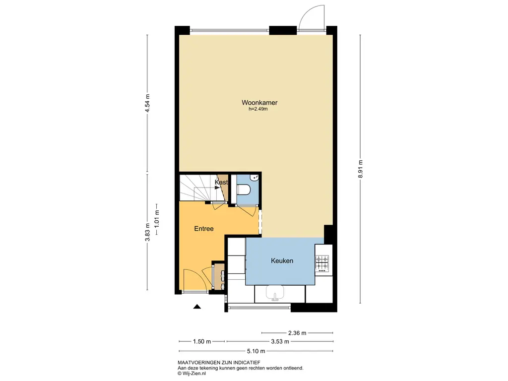 De vermelde afmetingen zijn lengte/ diepte x breedte (bezien vanuit het binnentreden van een ruimte).