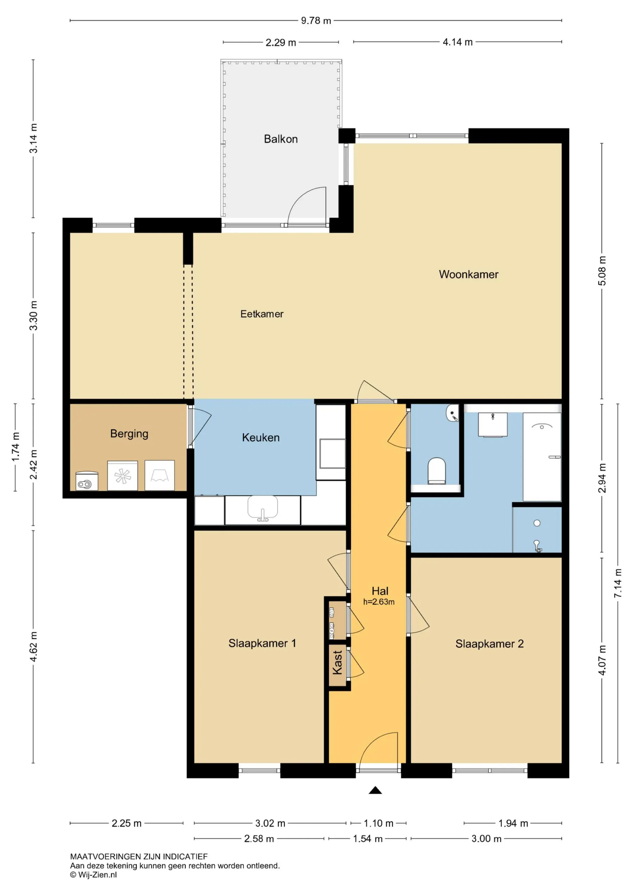 De vermelde afmetingen/ oppervlakten in deze informatie zijn gemeten op basis van de BBMI (Branche Brede Meetinstructie). De meetinstructie is bedoeld om een meer eenduidige manier van meten toe te passen voor het geven van een indicatie van de gebruiksoppervlakte. De meetinstructie sluit verschillen in meetuitkomsten niet volledig uit, door bijvoorbeeld interpretatieverschillen, afrondingen of beperkingen bij het uitvoer en van de meting.