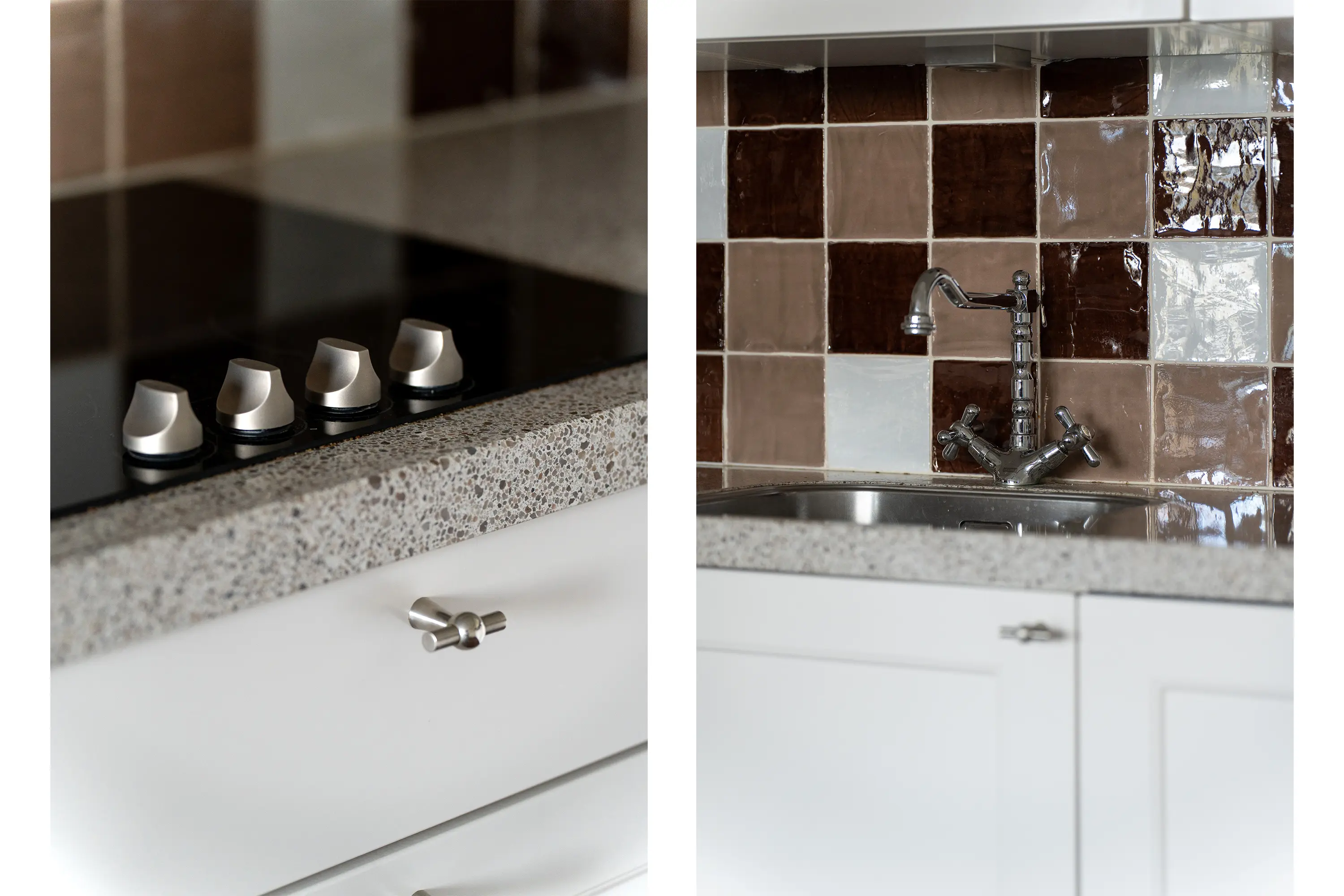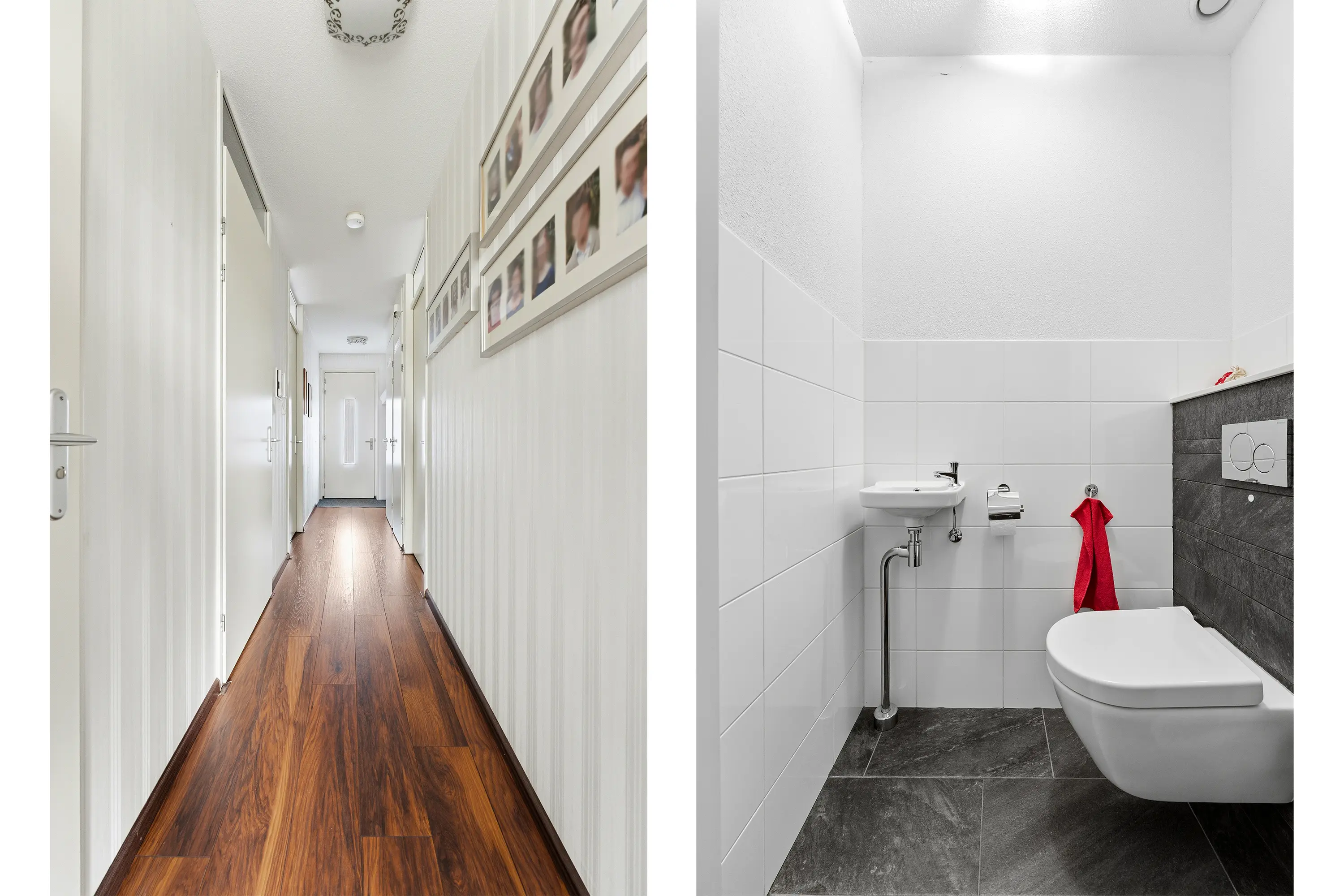 Separate toiletruimte, modern afgewerkt en voorzien van een wandcloset en fonteintje.