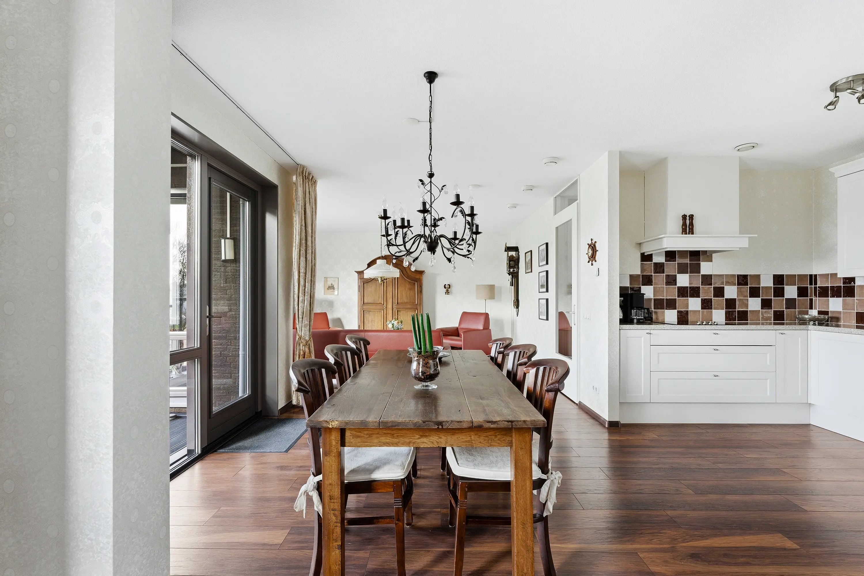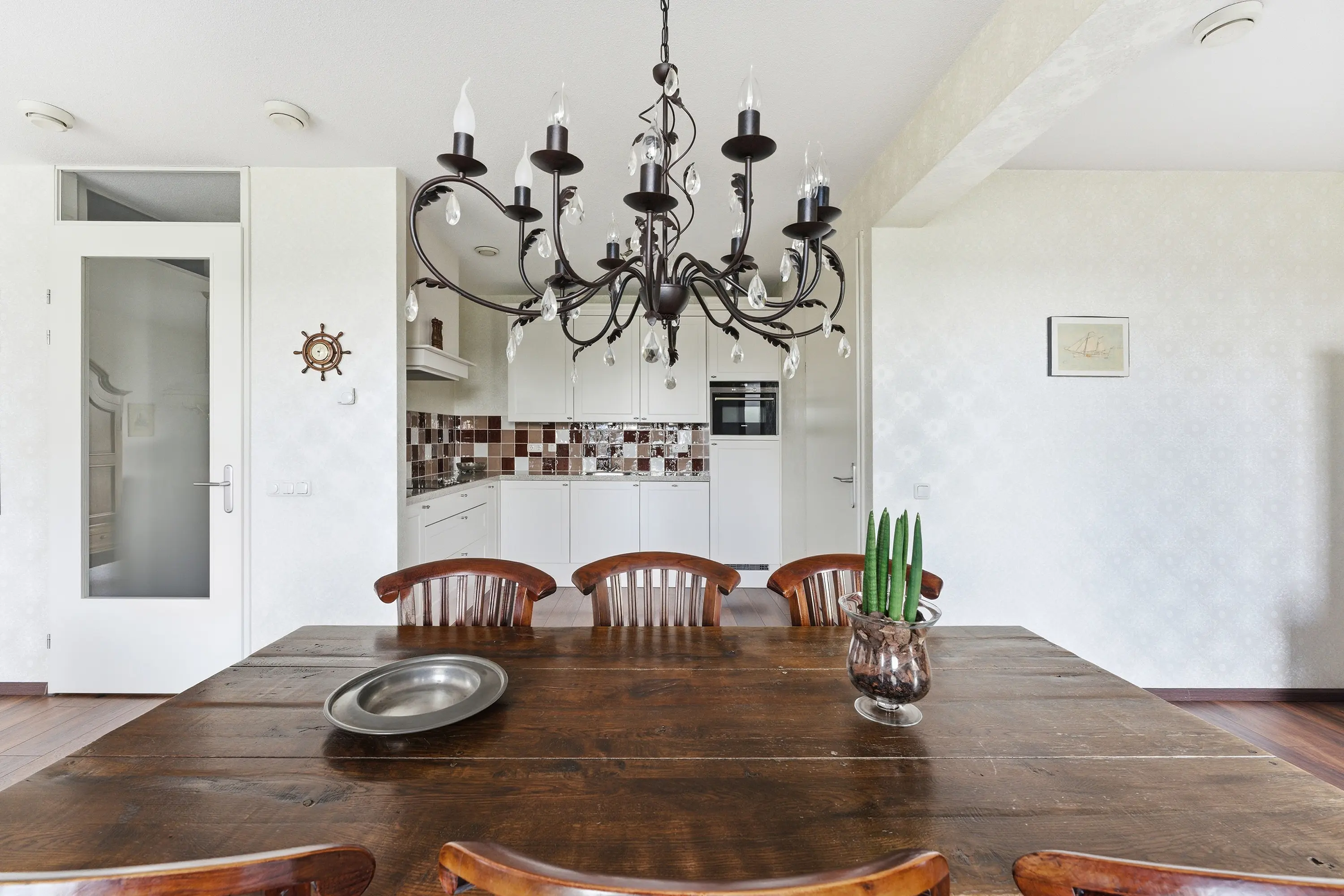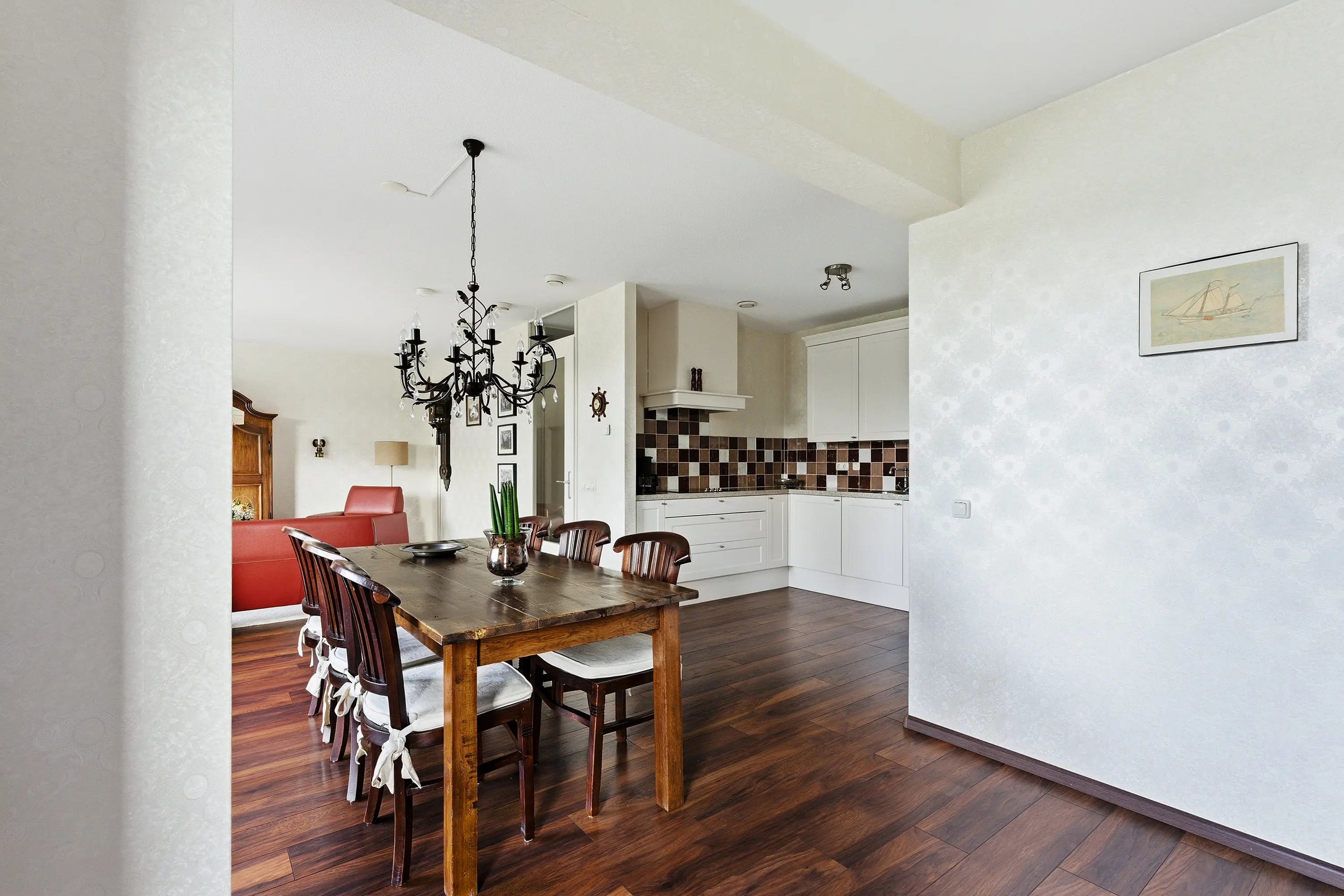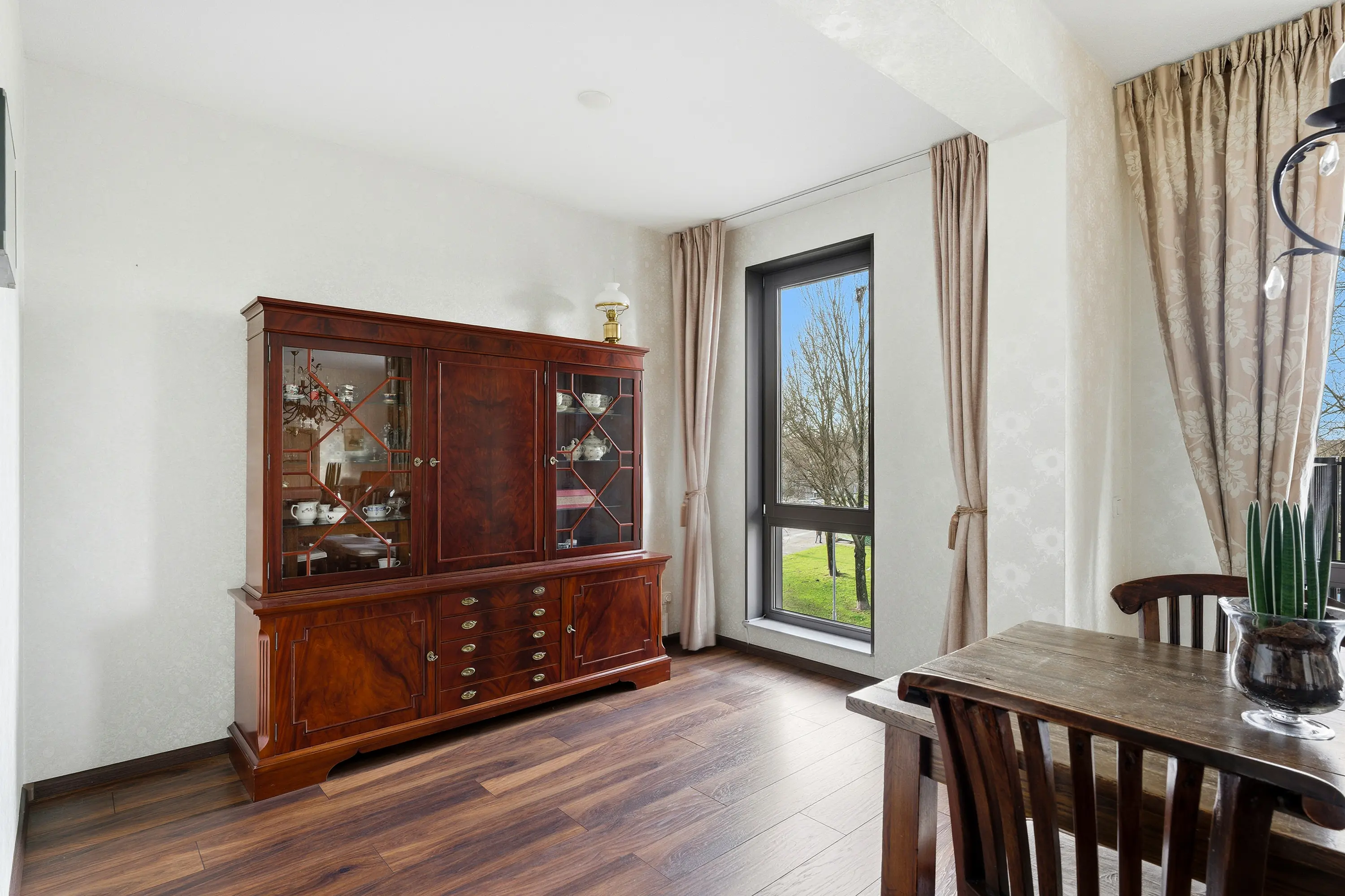 Vanuit de hal komt u in de ruime en lichte woonkamer met grote ramen tot aan de grond. Deze zorgen voor een prettige lichtinval en een ruimtelijk gevoel. De woonkamer staat in directe verbinding met het eetgedeelte, dat extra royaal is doordat een voormalige slaapkamer bij de ruimte is betrokken. Via een loopdeur bereikt u het ruime balkon met een heerlijk vrij uitzicht op het water en het groen van de singel.