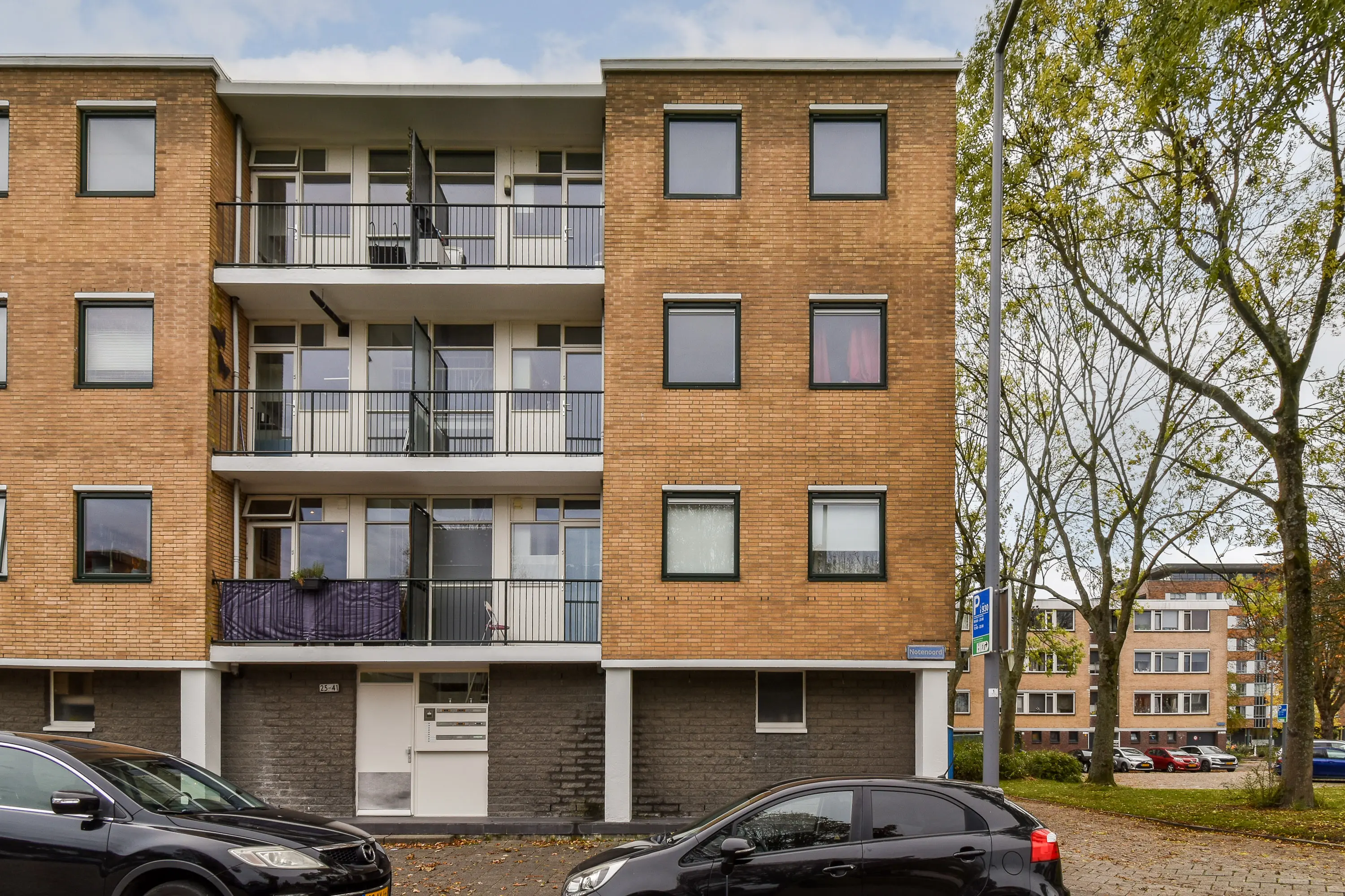 Entree via een afgesloten portiek met intercom en een berging in de onderbouw (ca. 6 m²).