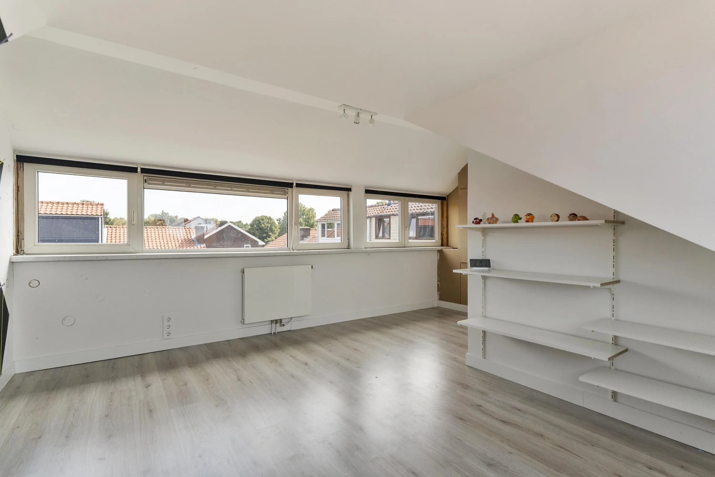 Ruime verdieping met hokverhoging en een dakkapel aan de voorzijde. De Mogelijkheid is aanwezig om hier een tweetal kamers te realiseren. Er is veel praktische bergruimte achter de knieschotten. Ook bevindt zich hier de opstelling van de Cv-ketel (Remeha 2024).