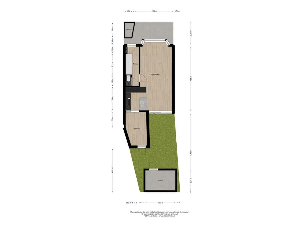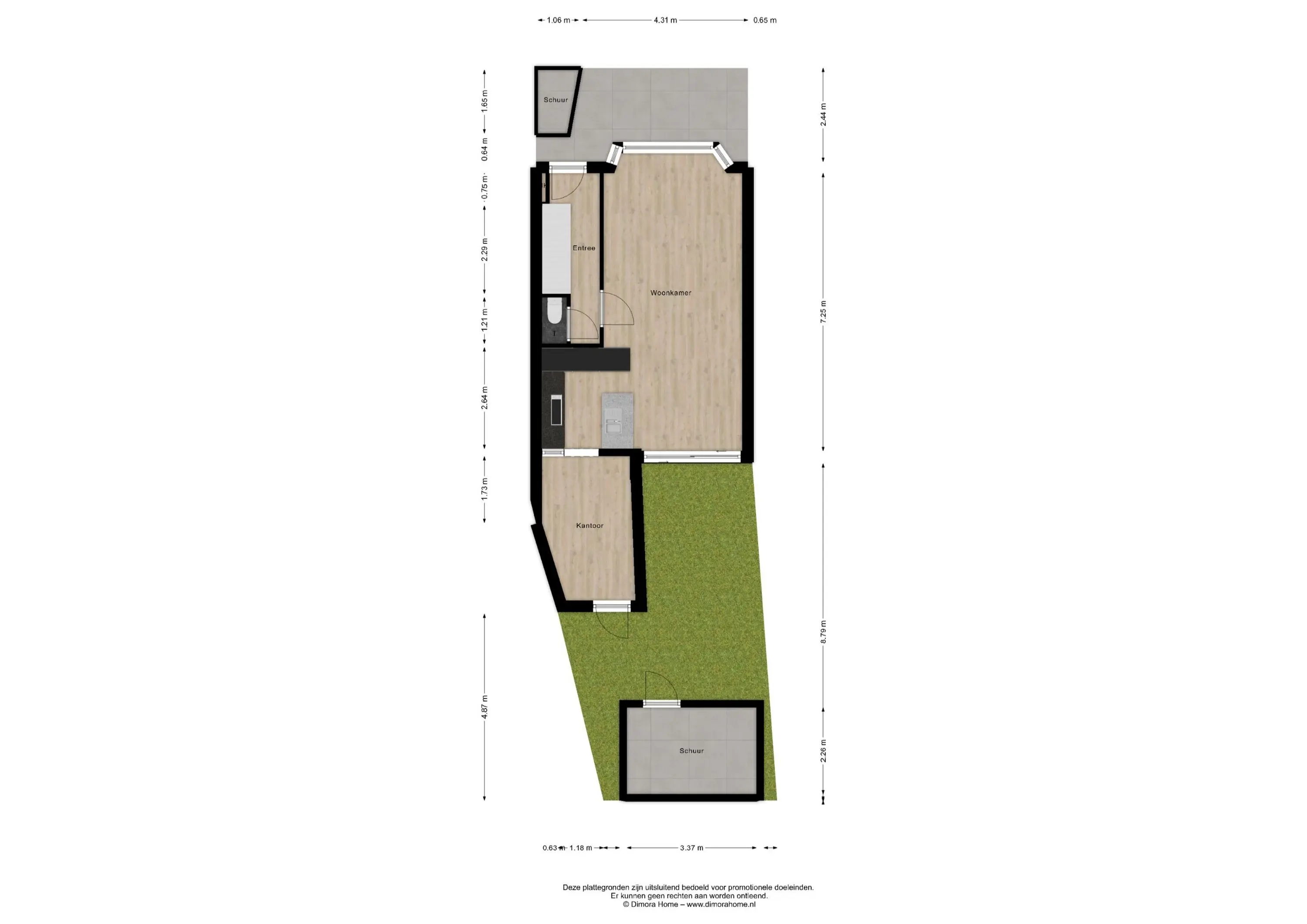 De vermelde afmetingen/ oppervlakten in deze informatie zijn gemeten op basis van de BBMI (Branche Brede Meetinstructie). De meetinstructie is bedoeld om een meer eenduidige manier van meten toe te passen voor het geven van een indicatie van de gebruiksoppervlakte. De meetinstructie sluit verschillen in meetuitkomsten niet volledig uit, door bijvoorbeeld interpretatieverschillen, afrondingen of beperkingen bij het uitvoer en van de meting.