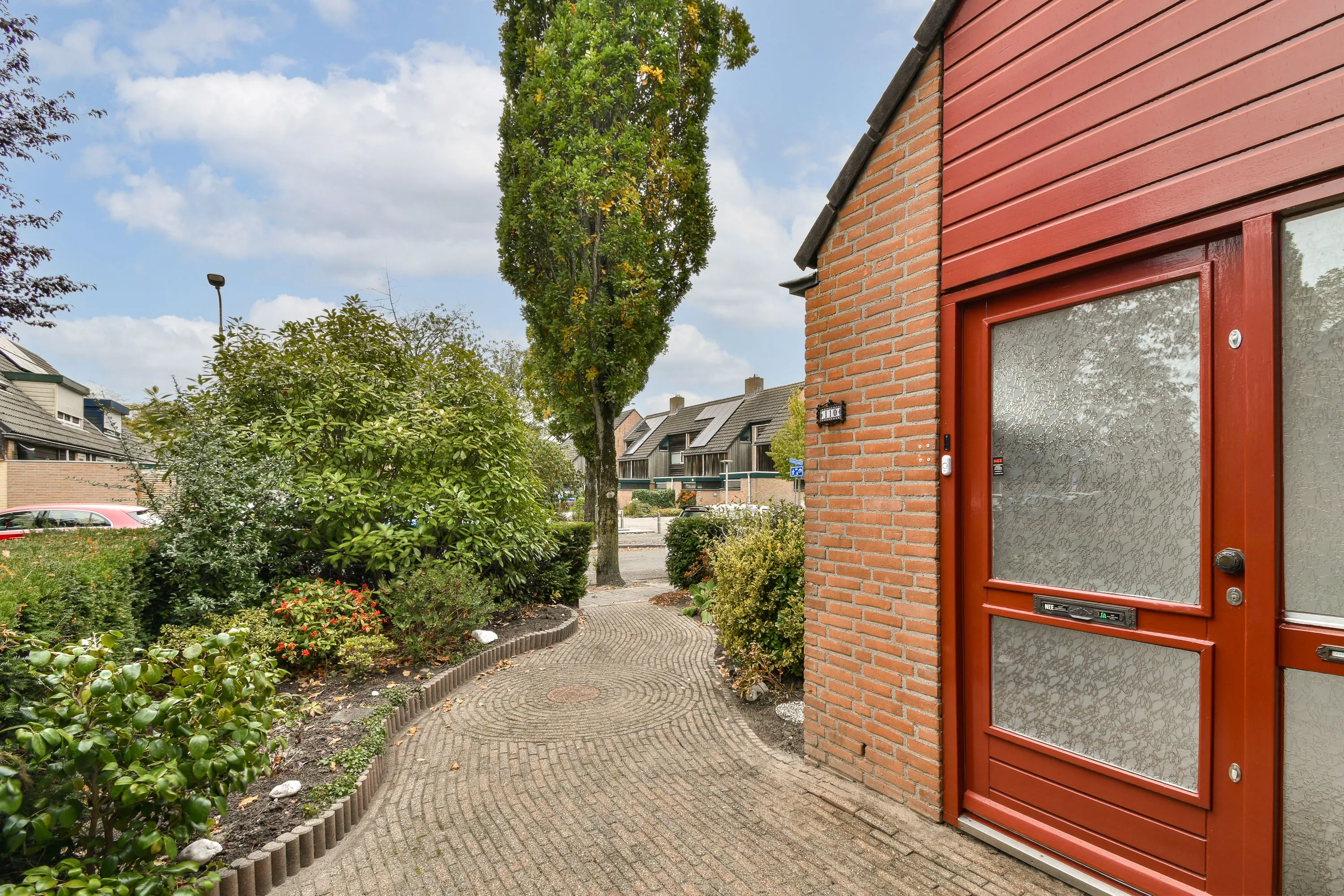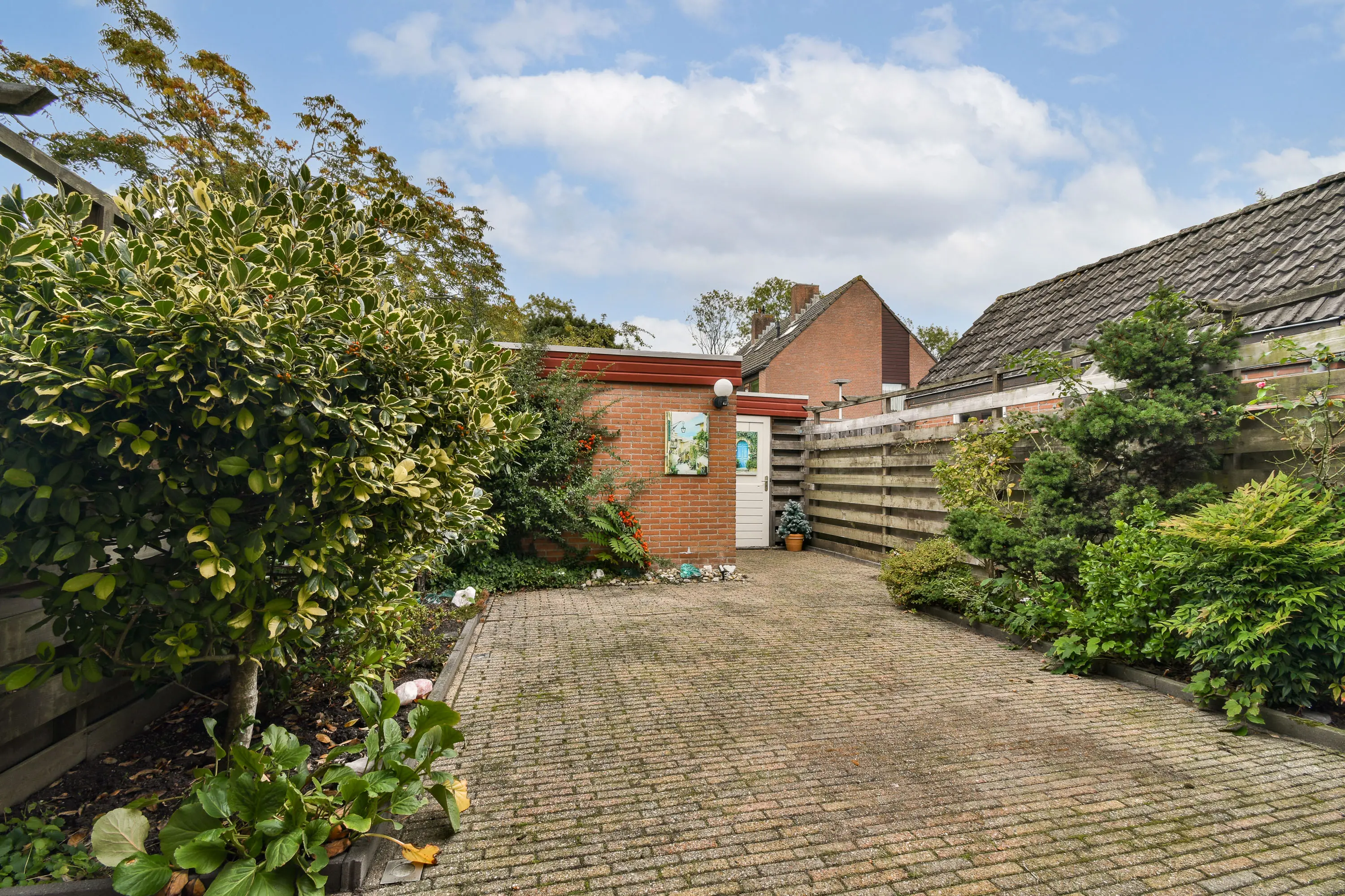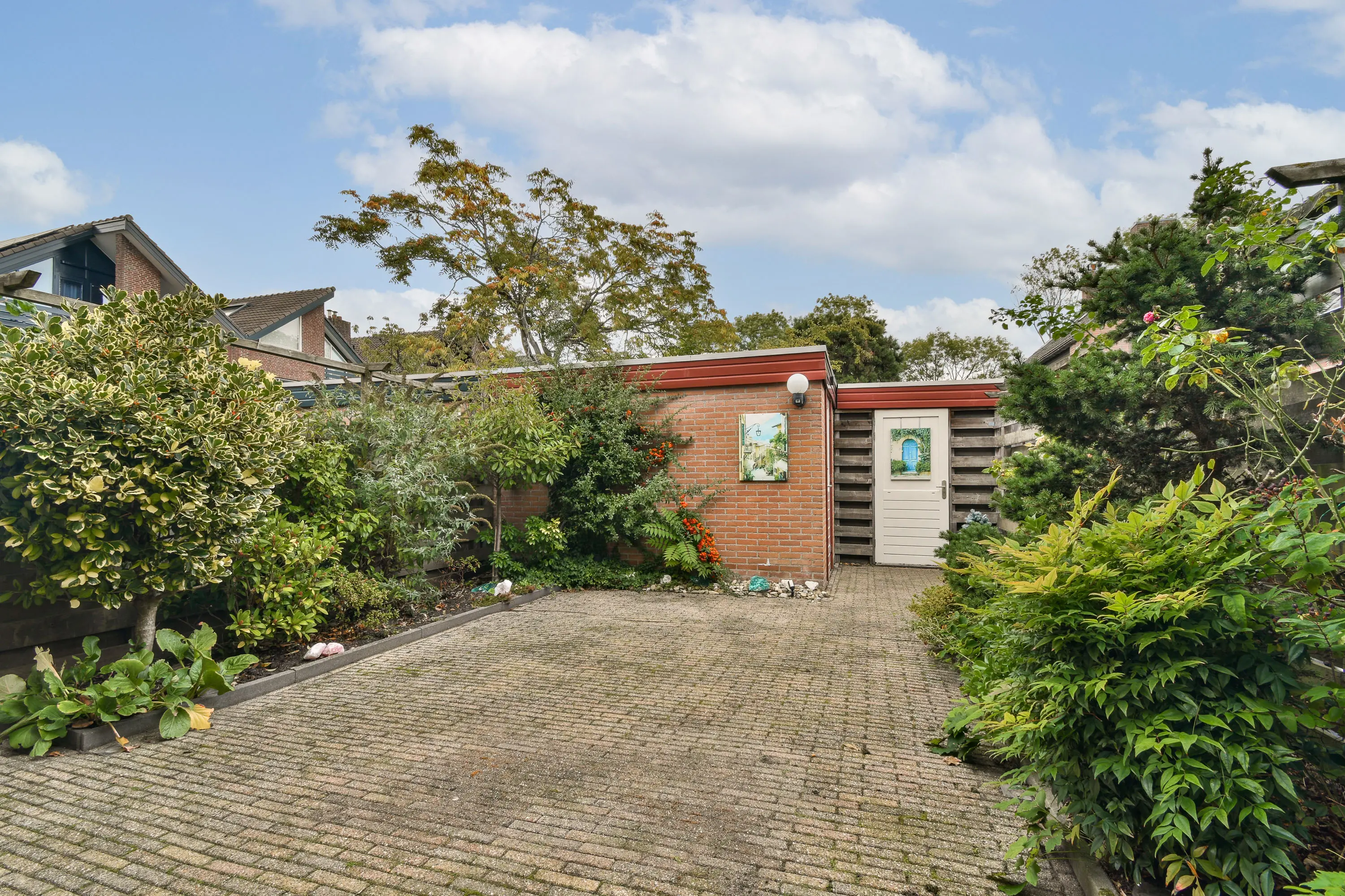 De voortuin (ca. 8 meter diep) en achtertuin (ca. 9,5 meter diep) zijn verzorgd aangelegd met bestrating, diverse borders met vaste aanplant en een achterom.