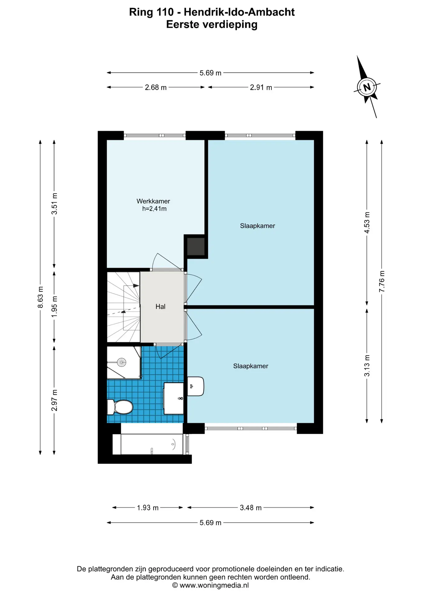 De vermelde afmetingen/ oppervlakten in deze informatie zijn gemeten op basis van de BBMI (Branche Brede Meetinstructie). De meetinstructie is bedoeld om een meer eenduidige manier van meten toe te passen voor het geven van een indicatie van de gebruiksoppervlakte. De meetinstructie sluit verschillen in meetuitkomsten niet volledig uit, door bijvoorbeeld interpretatieverschillen, afrondingen of beperkingen bij het uitvoer en van de meting.
