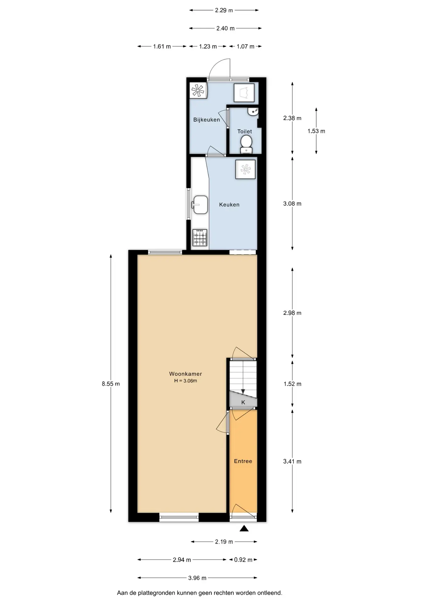 De vermelde afmetingen/ oppervlakten in deze informatie zijn gemeten op basis van de BBMI (Branche Brede Meetinstructie). De meetinstructie is bedoeld om een meer eenduidige manier van meten toe te passen voor het geven van een indicatie van de gebruiksoppervlakte. De meetinstructie sluit verschillen in meetuitkomsten niet volledig uit, door bijvoorbeeld interpretatieverschillen, afrondingen of beperkingen bij het uitvoer en van de meting.