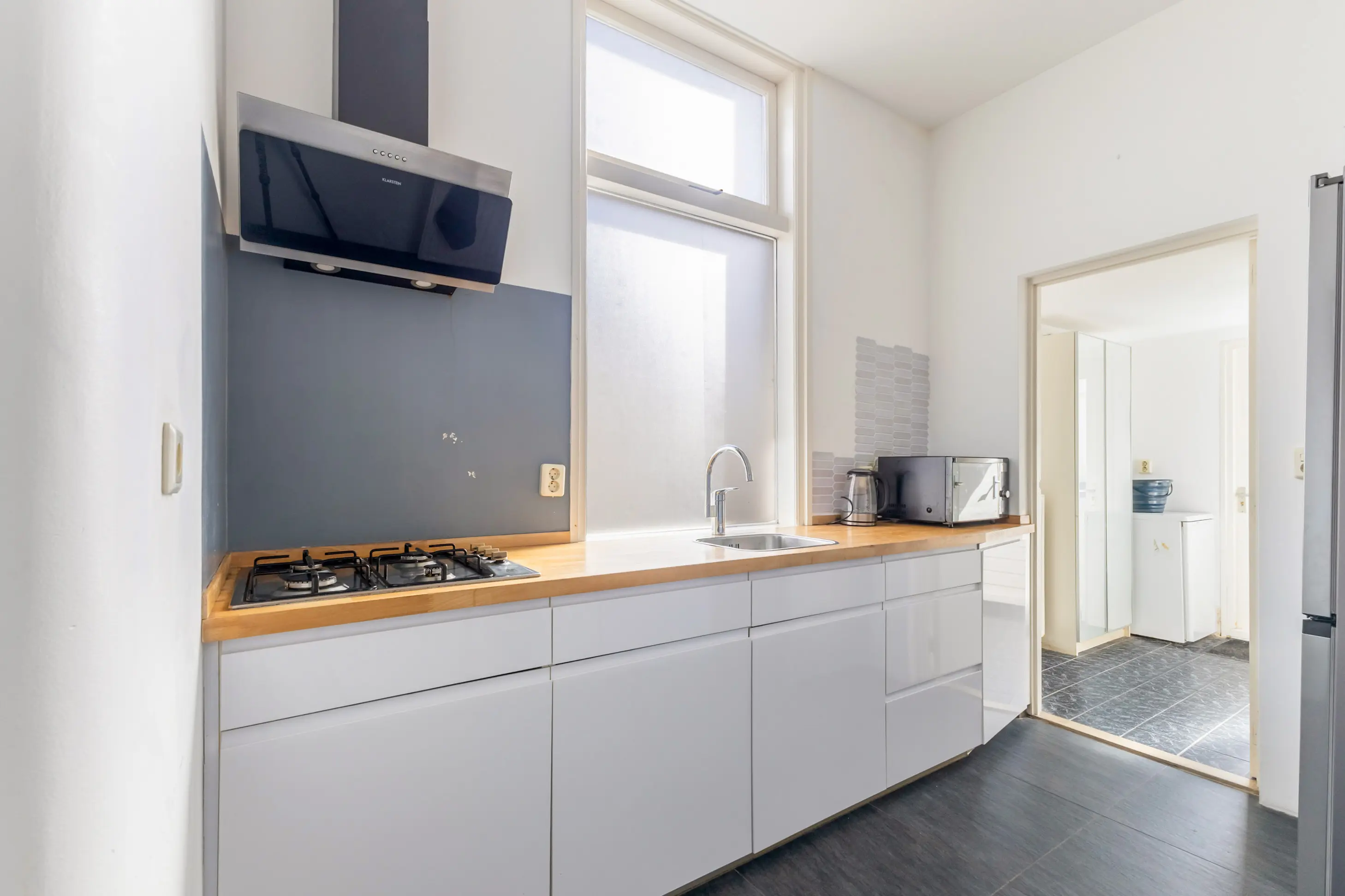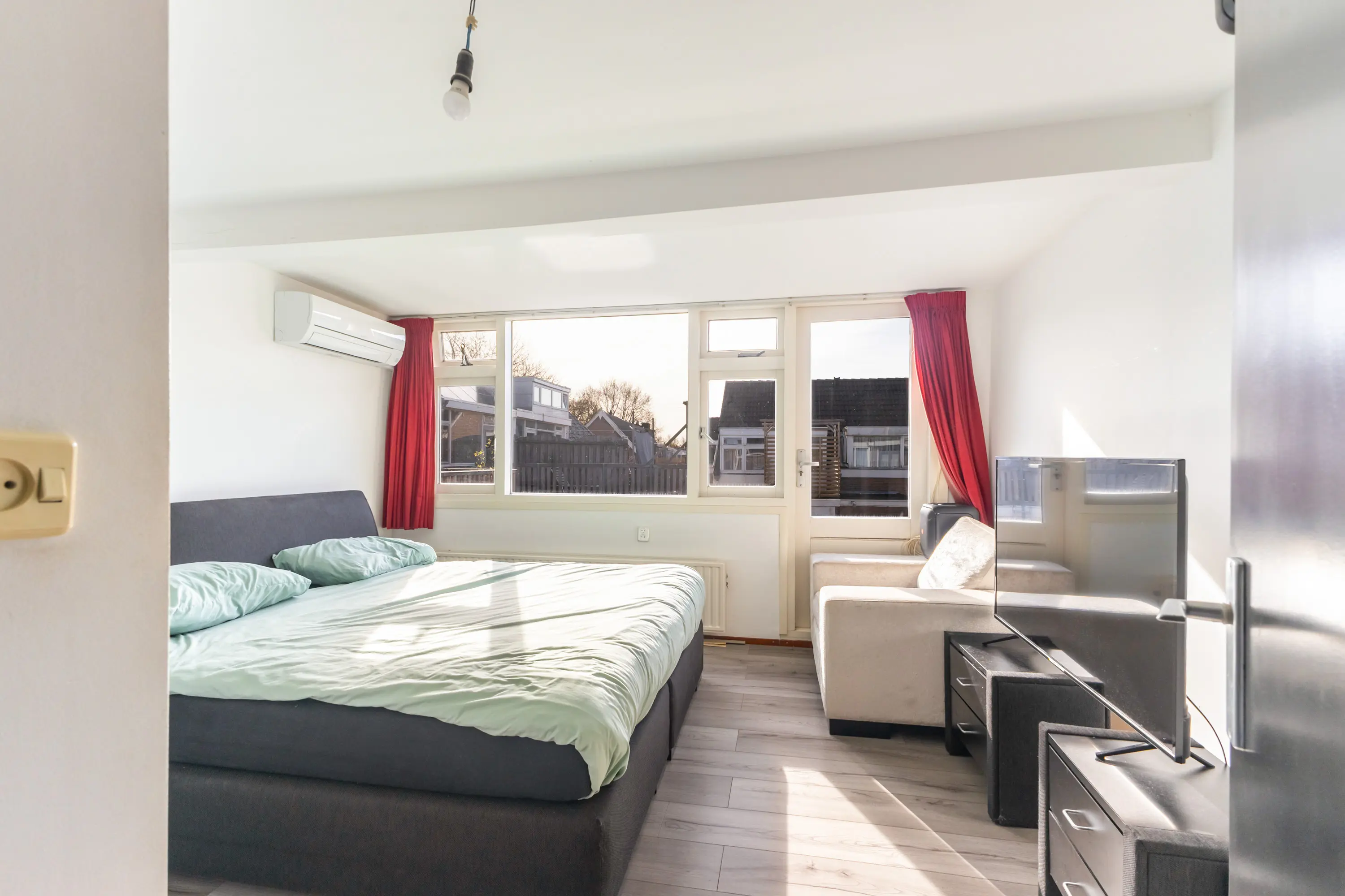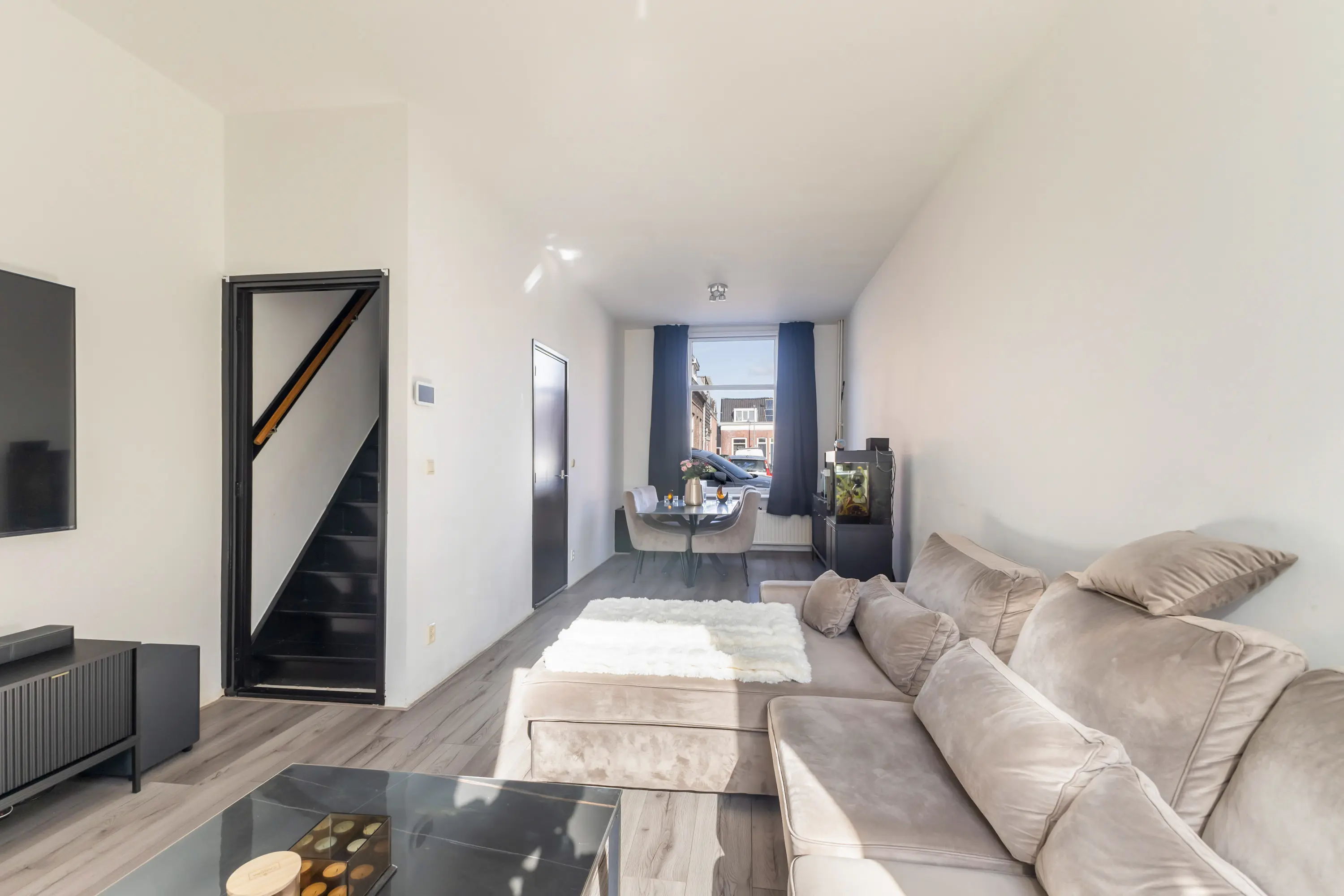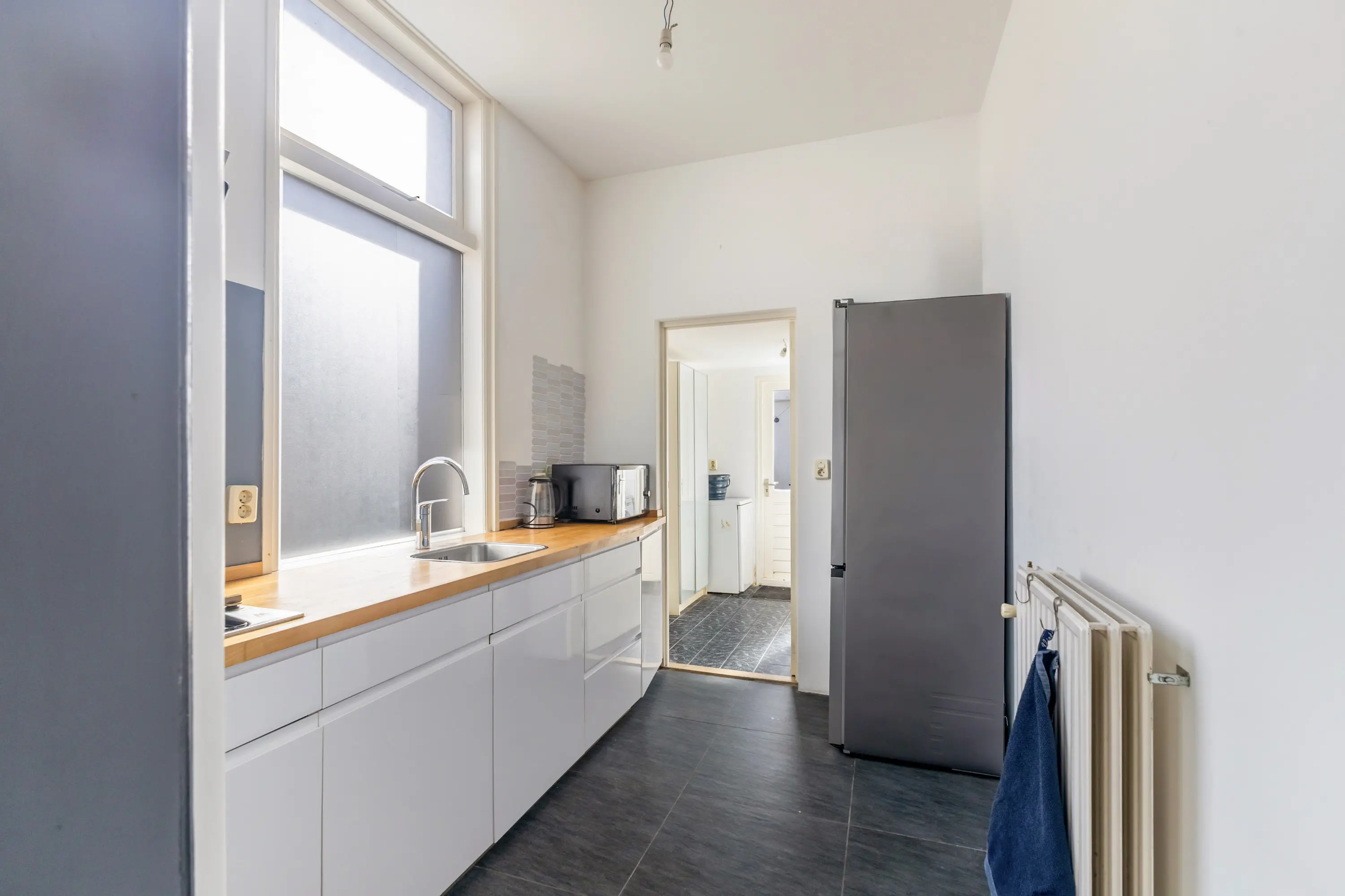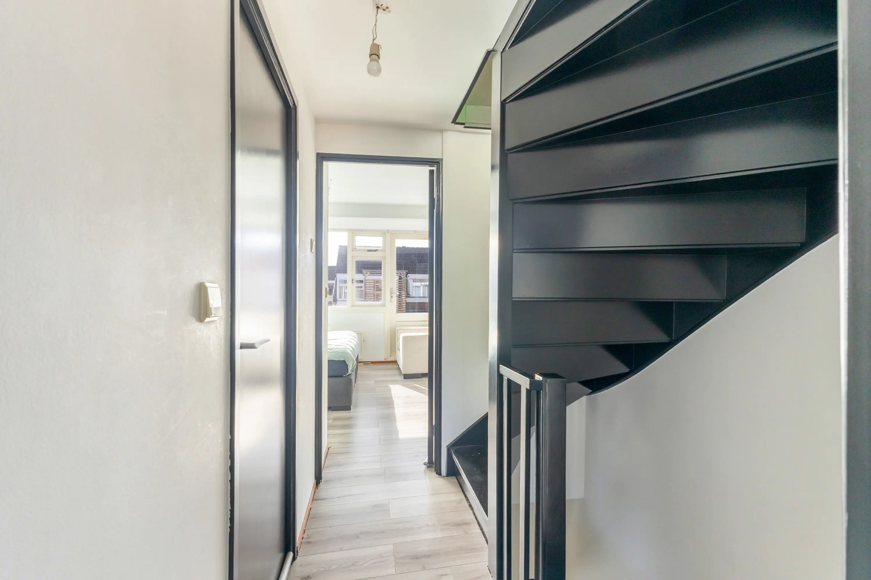 Deze karakteristieke woning uit 1932 beschikt over circa 90 m² woonoppervlakte, verdeeld over drie verdiepingen. Op de begane grond vind je een ruime entree, een lichte woonkamer, keuken, een praktische bijkeuken en toiletruimte. De eerste verdieping biedt twee volwaardige slaapkamers en een ruime badkamer. De tweede verdieping is een open ruimte, momenteel in gebruik als derde slaapkamer.
