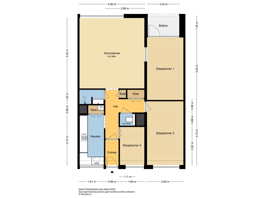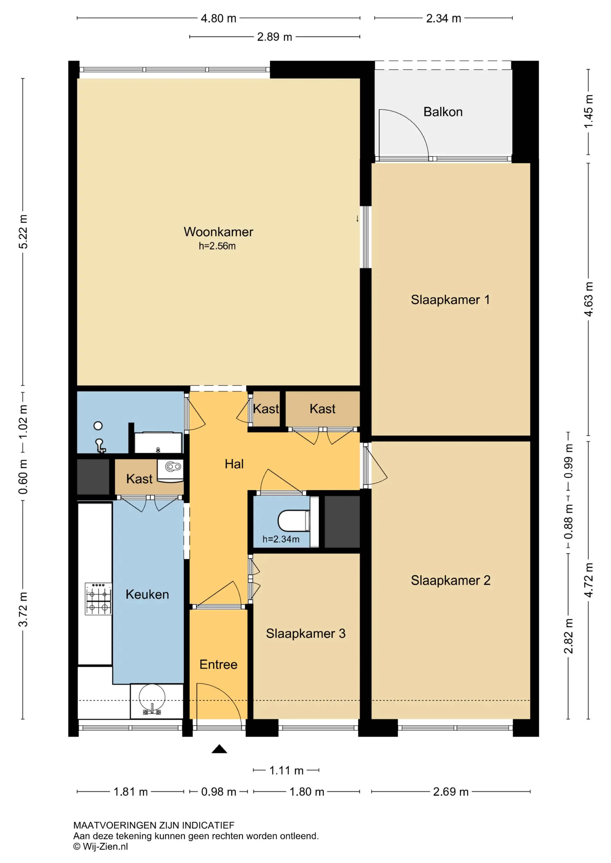 De vermelde afmetingen zijn lengte/ diepte x breedte (bezien vanuit het binnentreden van een ruimte).