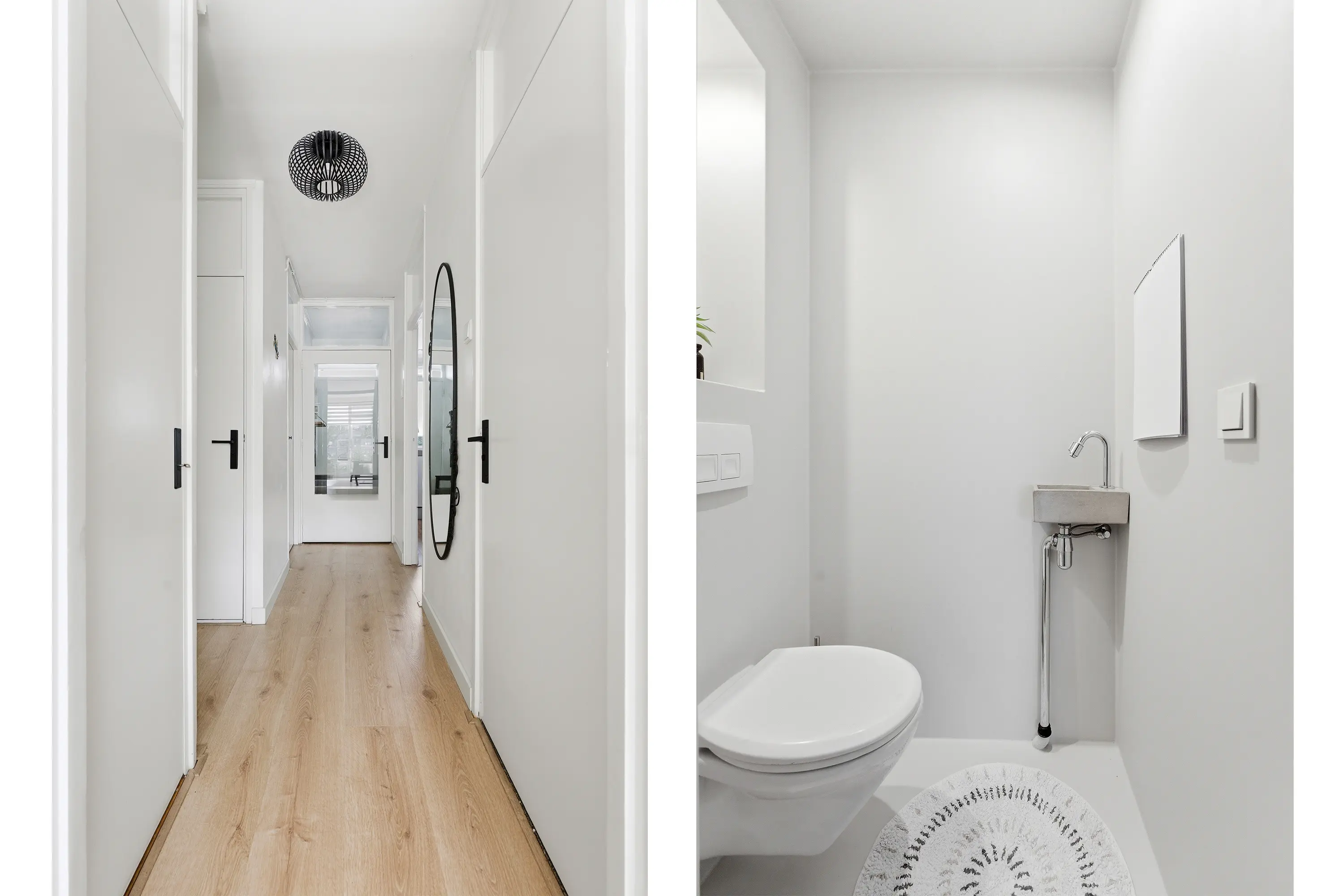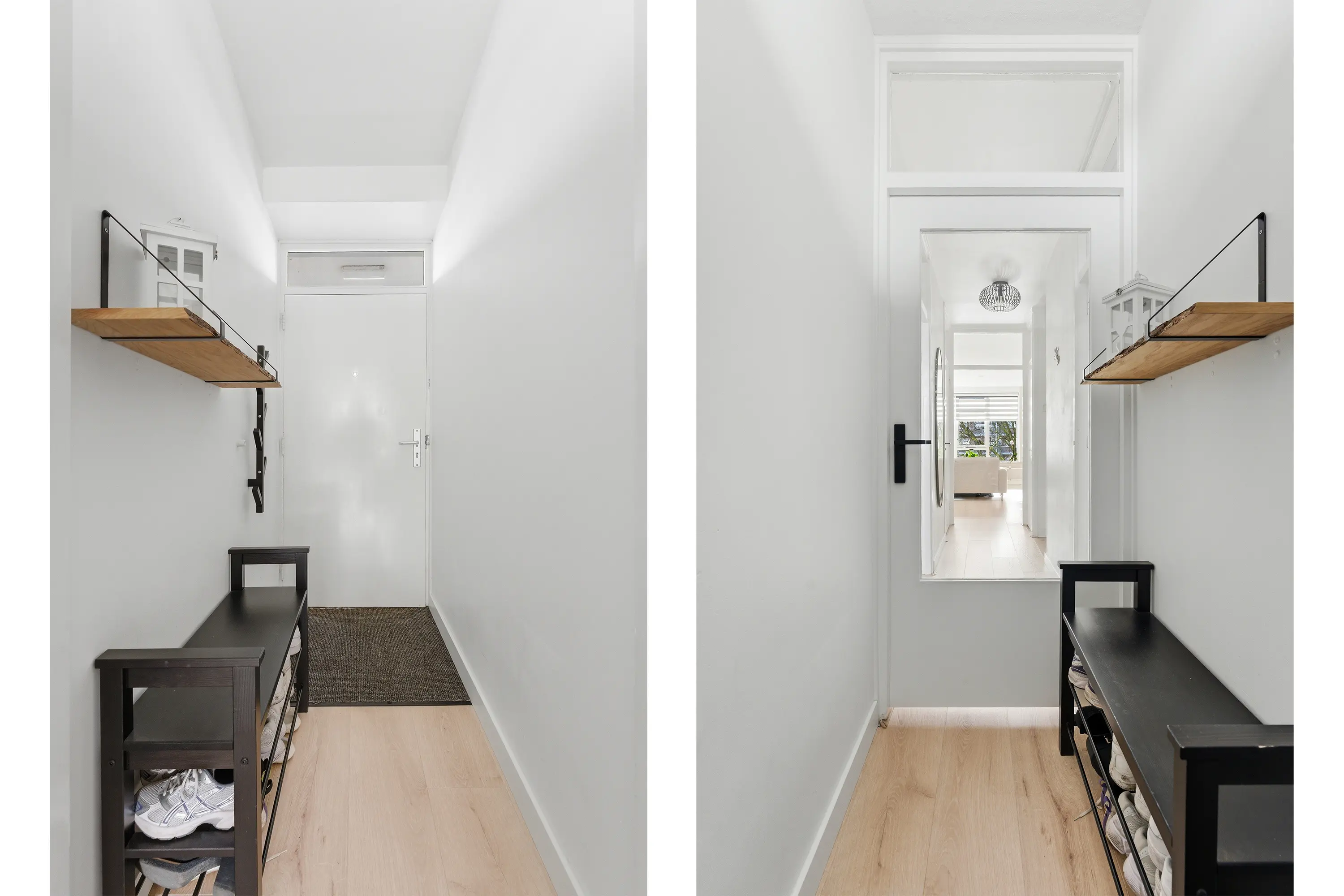Tochtportaal met toegang tot de gang, twee vaste kasten en toegang tot alle vertrekken.