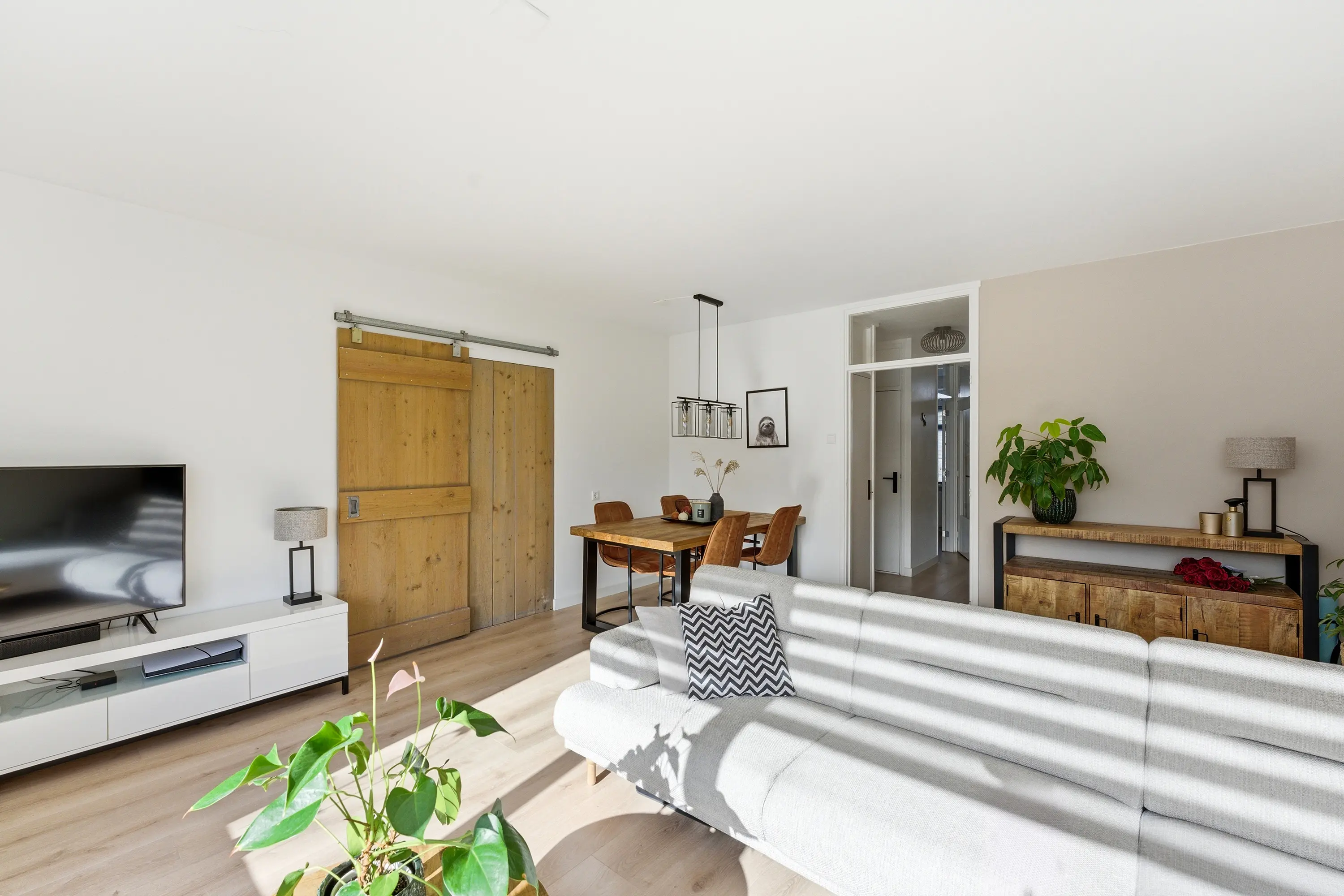 Lichte woonkamer met directe verbinding naar een eet- of slaapkamer