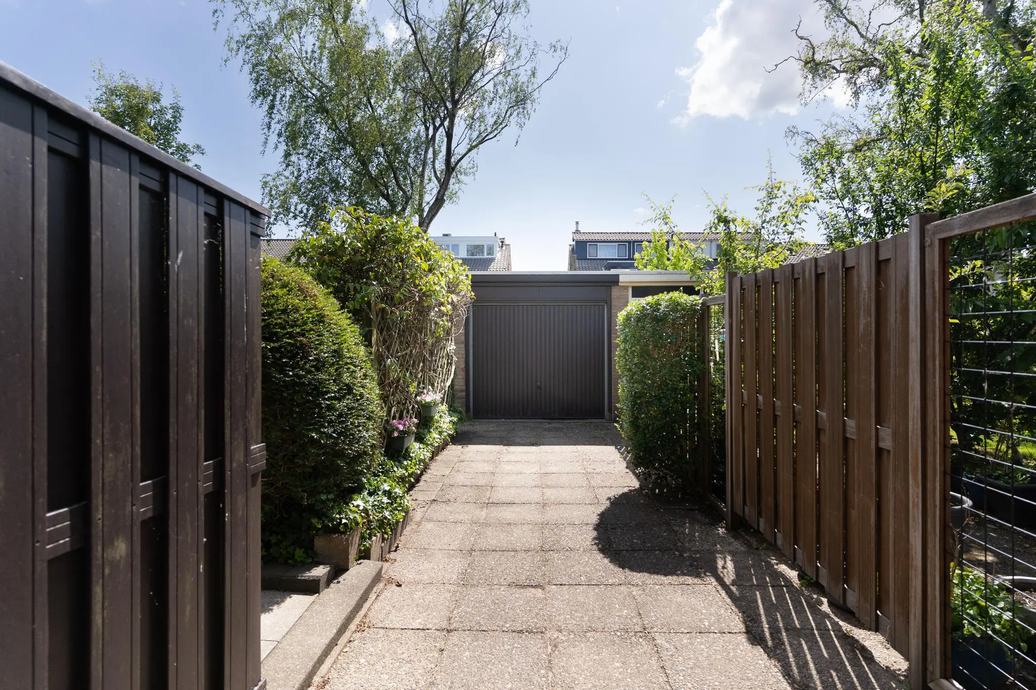 De achtertuin is een waar genot. Het geheel is fraai aangelegd en met ca. 17 meter diep zeker riant te noemen. Gezien de maatvoering en de uitstekende zonligging is er altijd wel een plekje in de zon of schaduw te vinden. Dankzij de oprit parkeer je op eigen terrein, en de vrijstaande garage biedt veel ruimte voor opslag of hobby’s. Aan de garage aan de achterzijde bevindt zich de aangebouwde berging.