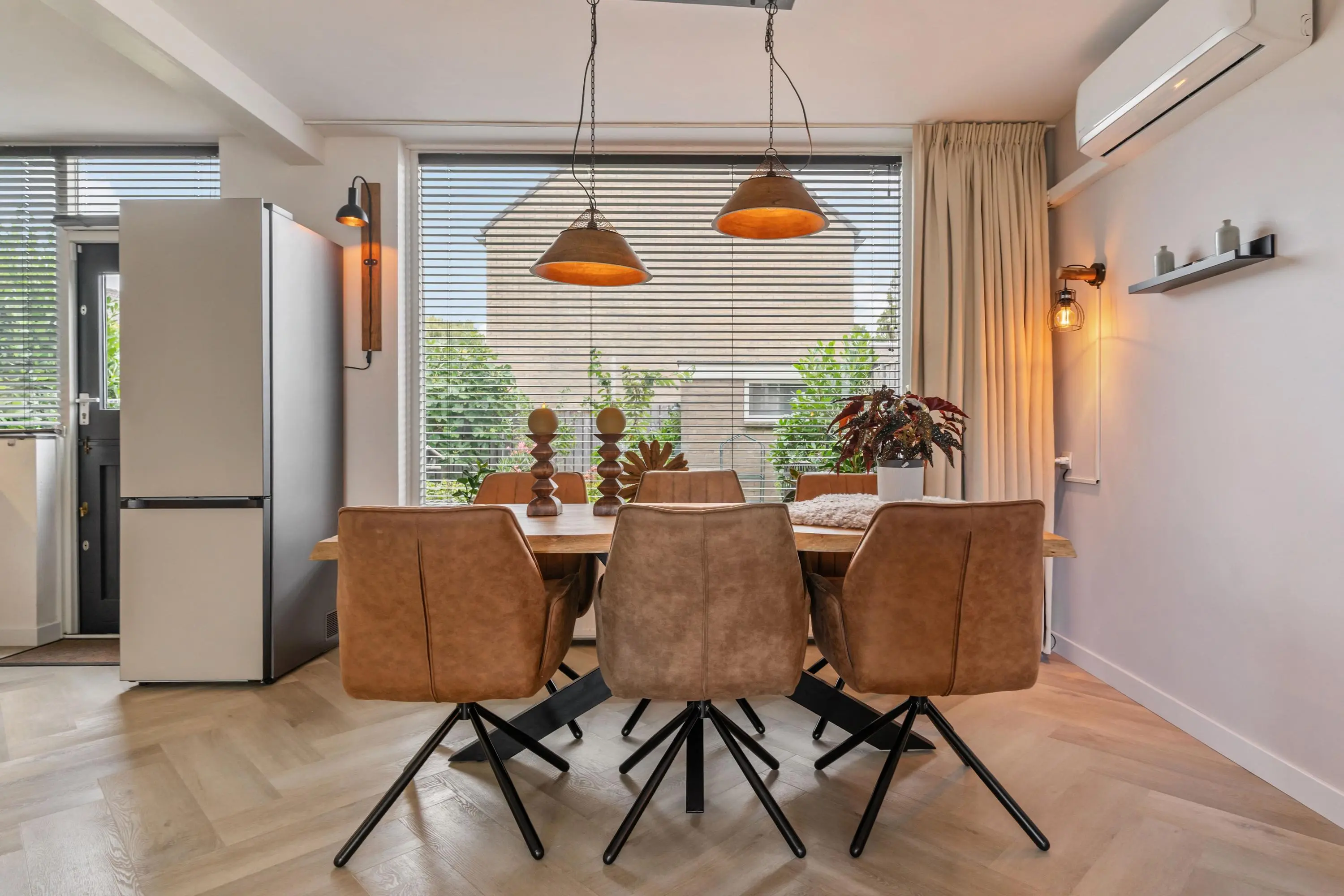 De gehele begane grond is in 2024 afgewerkt met een stijlvolle PVC-vloer gelegd in visgraatmotief.