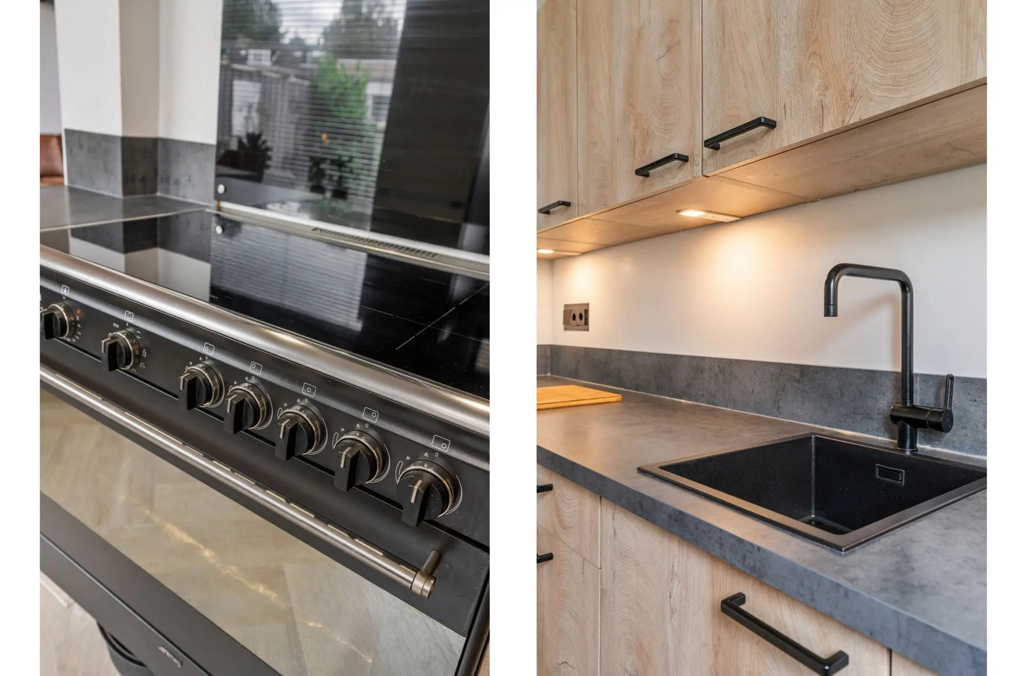 - Luxe keukenopstelling met moderne inbouwapparatuur.