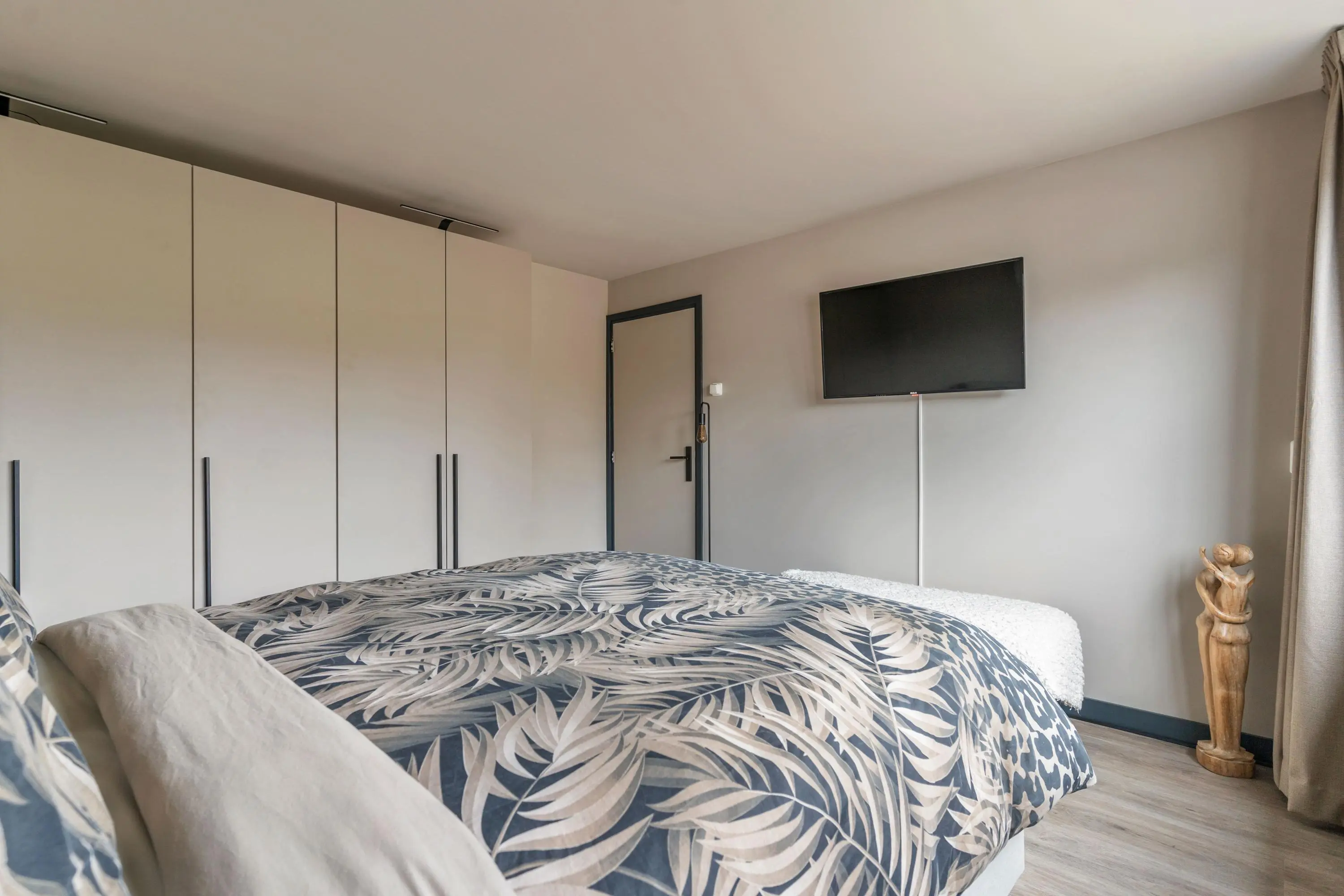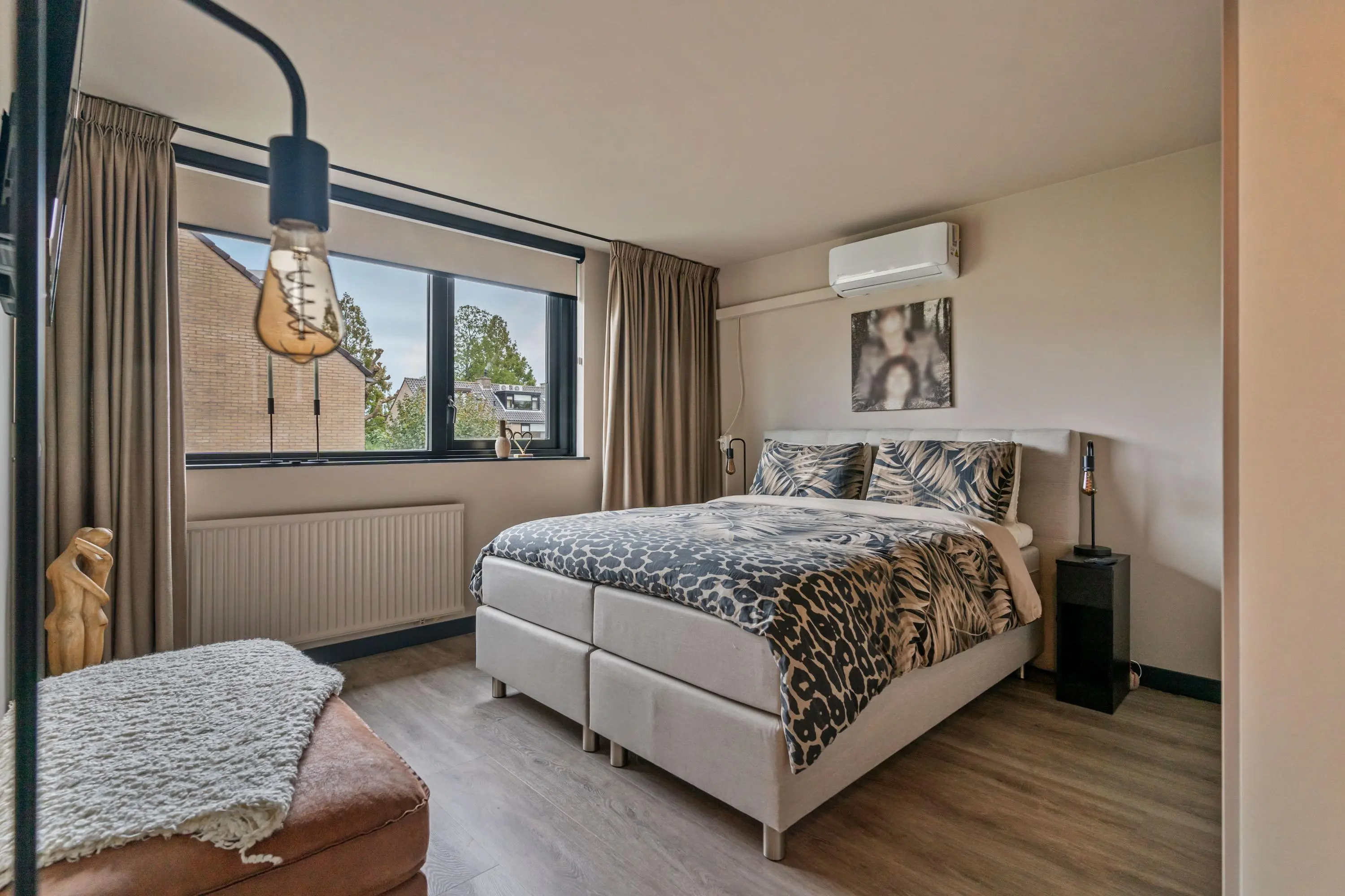 Slaapkamer 1: gelegen aan de achterzijde, voorzien van airco en een strakke/luxe garderobekast, welke recent is geplaatst.
