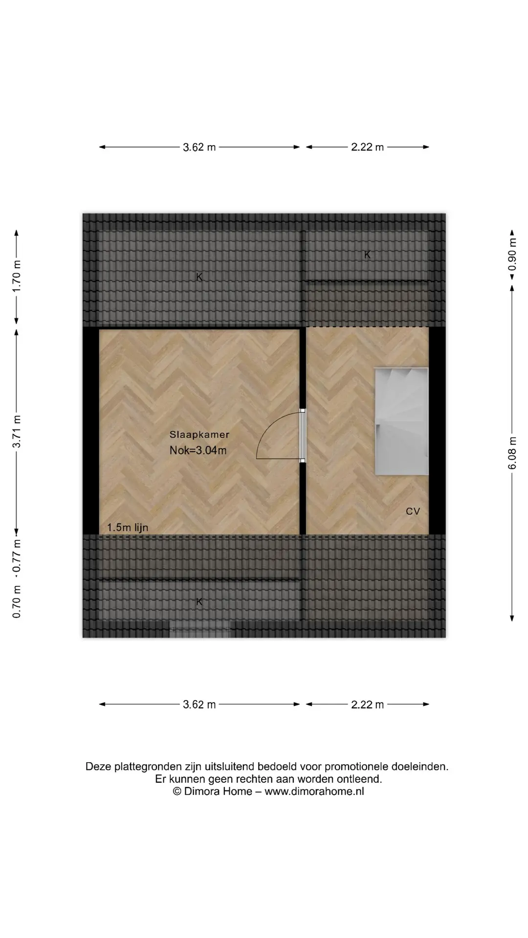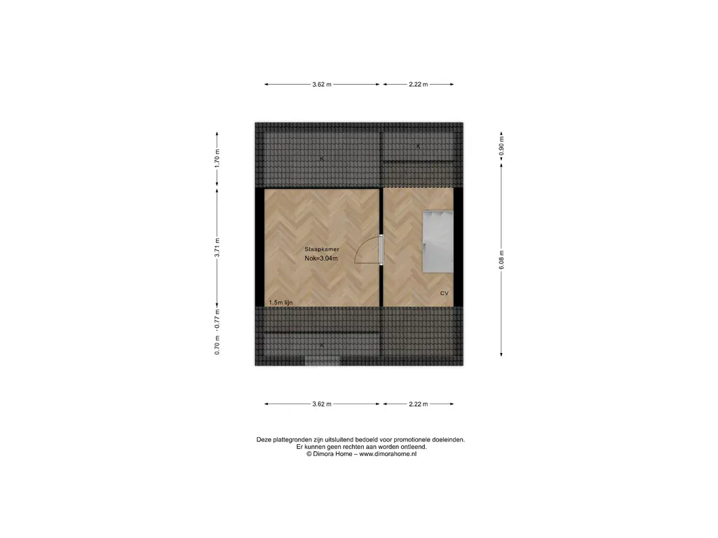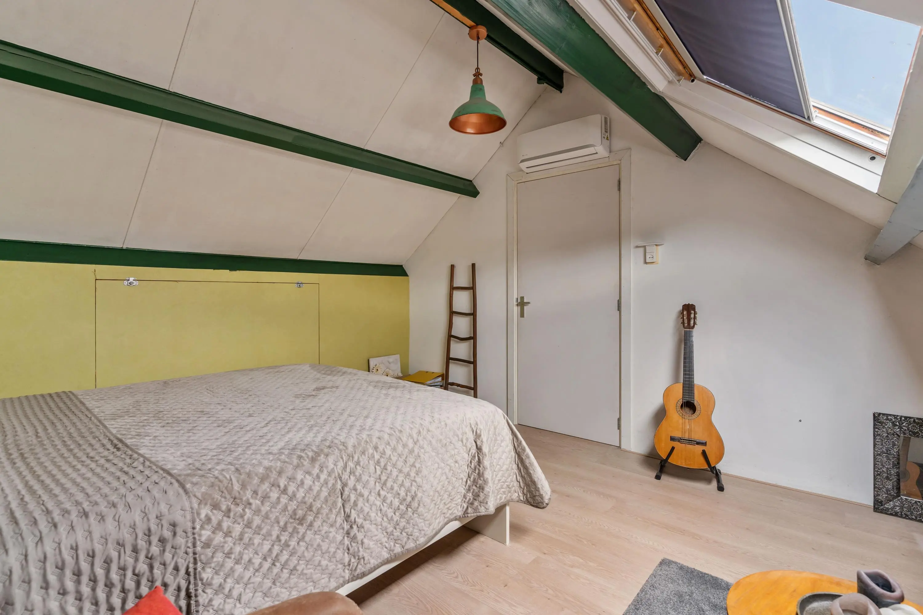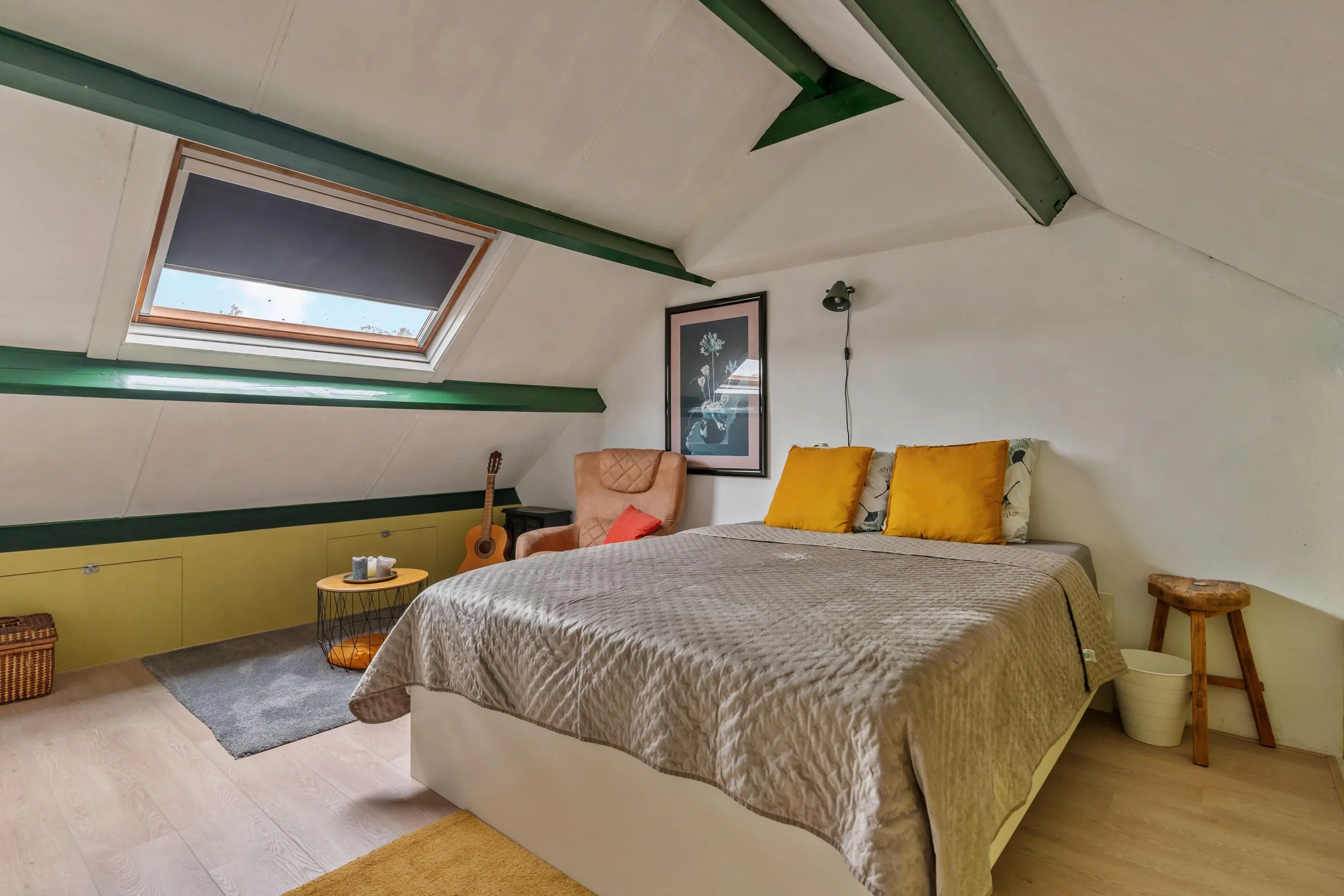 Slaapkamer 4: ruim en licht dankzij het dakvenster, voorzien van airco. Achter de knieschotten is volop bergruimte aanwezig. Extra mogelijkheden? Met een dakkapel creëer je eenvoudig een vijfde slaapkamer.