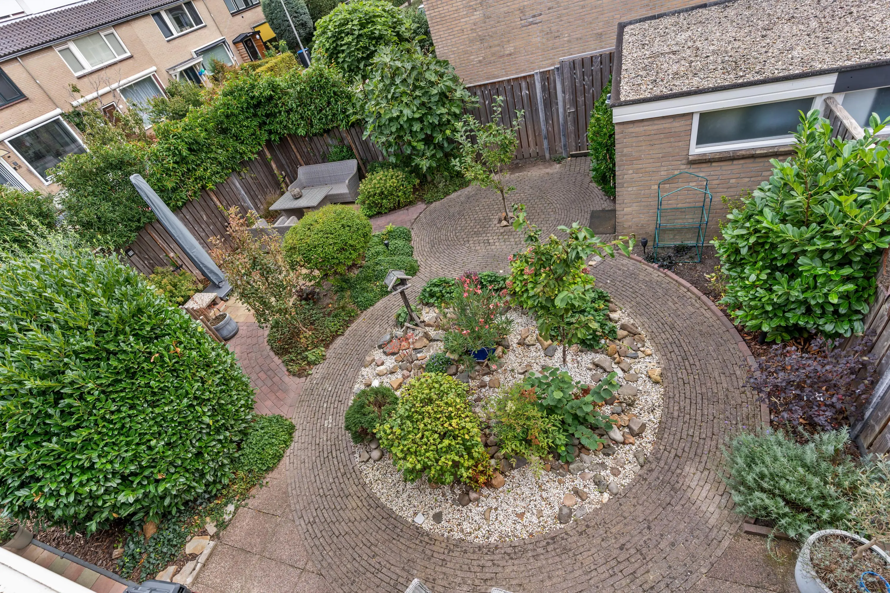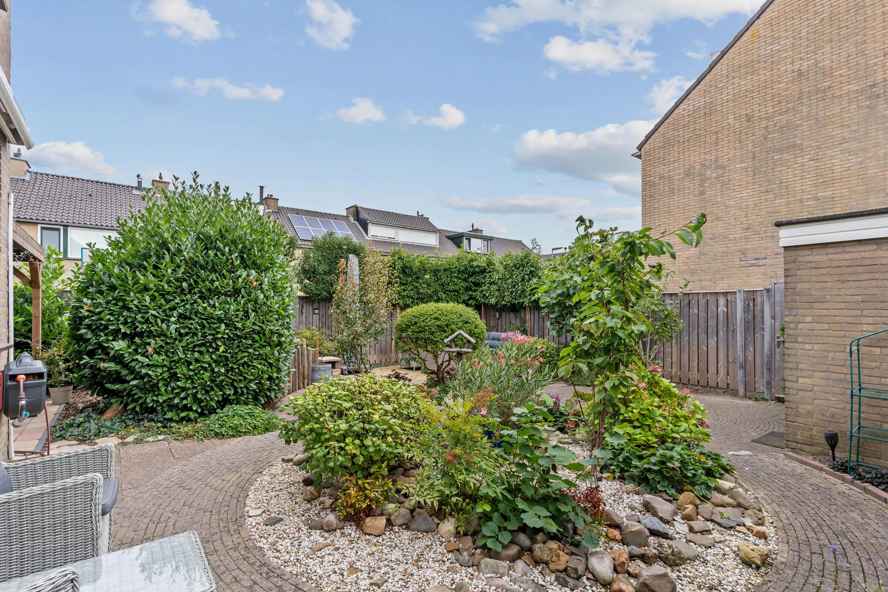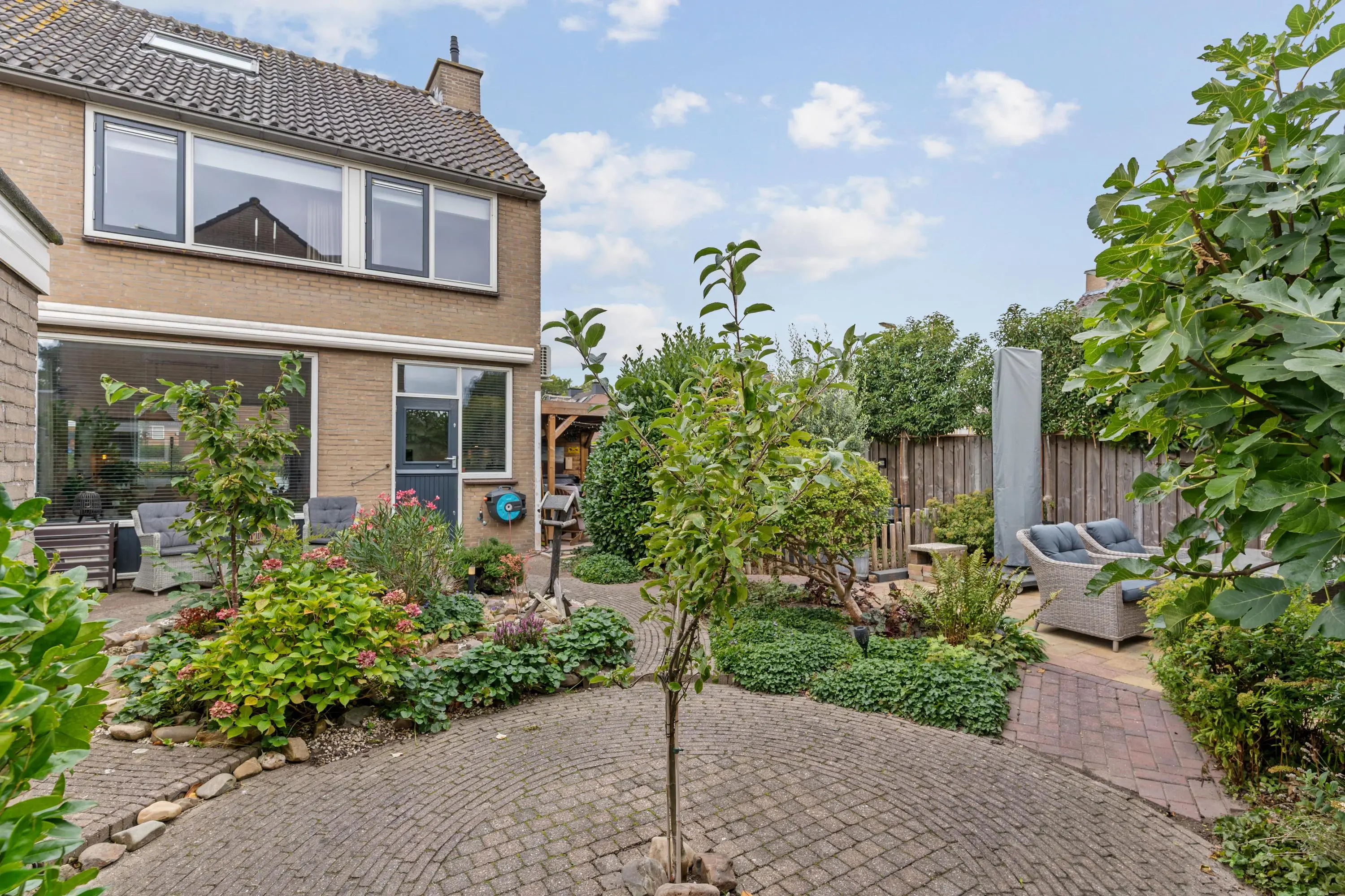 De tuin is een waar buitenparadijs. Voorzien van buitenverlichting en fraai aangelegd met sierbestrating, meerdere terrassen en een diversiteit aan beplanting. Dankzij de ruime afmetingen en gunstige ligging is er altijd een plek in de zon óf schaduw te vinden. Achter in de tuin staat een stenen berging en is een achterom aanwezig.