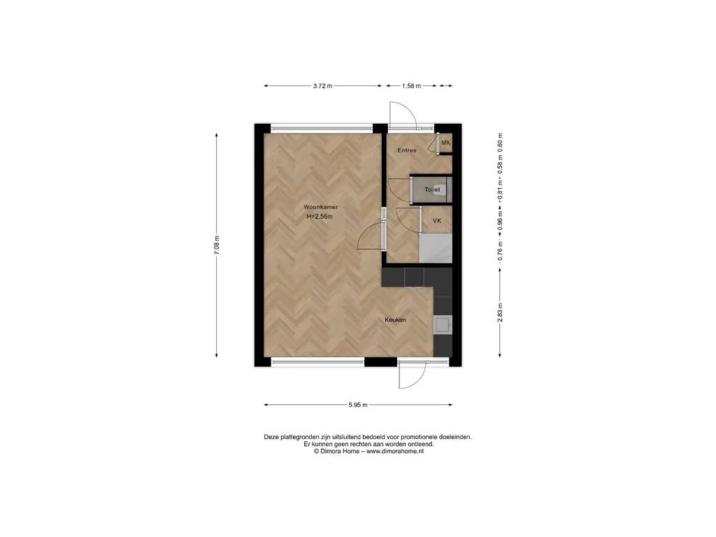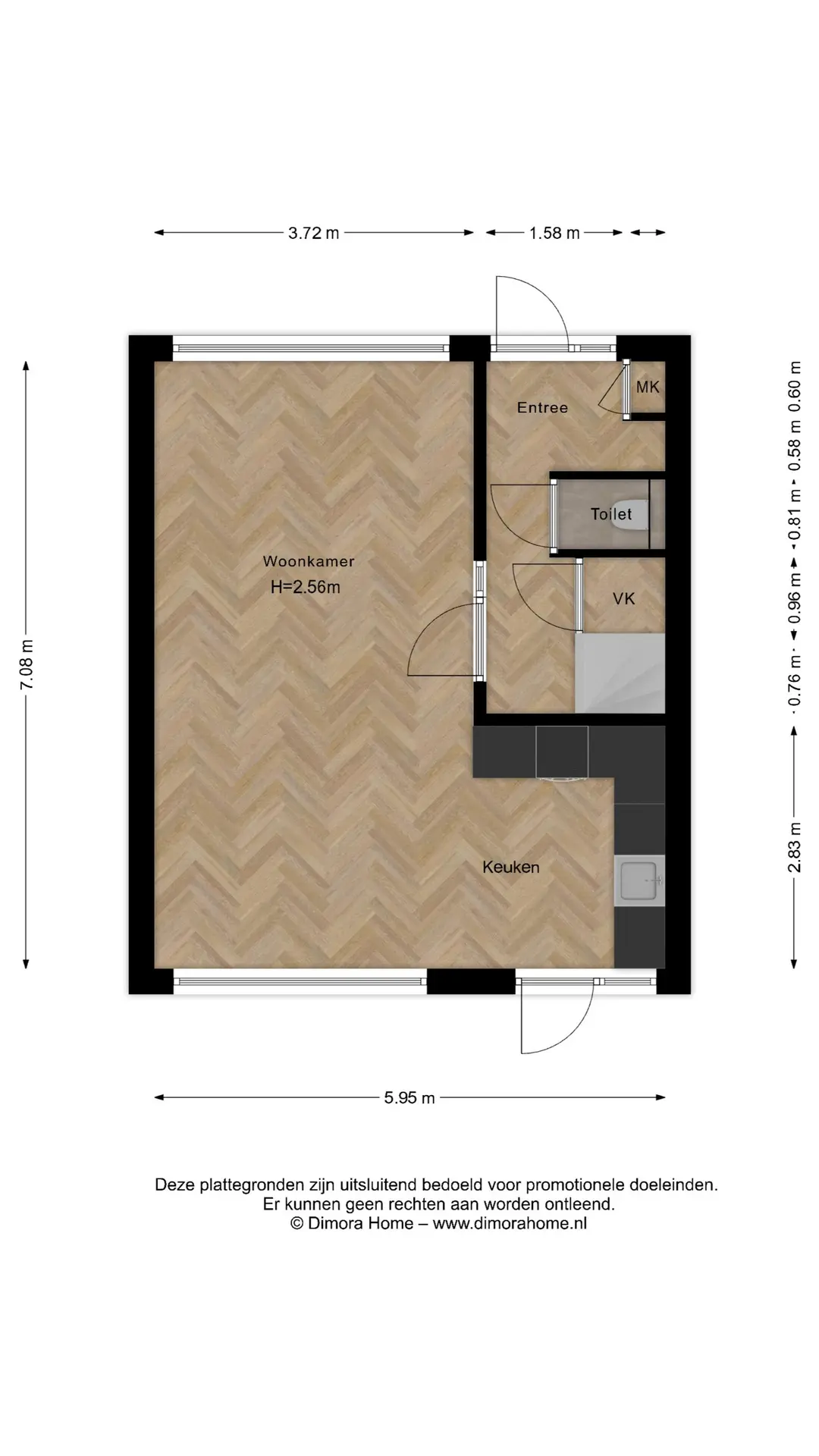 De vermelde afmetingen zijn lengte/ diepte x breedte (bezien vanuit het binnentreden van een ruimte).